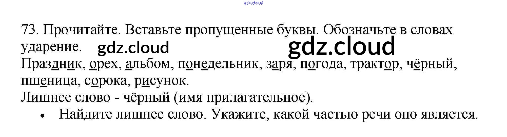 Ответ на задание 73 Рабочая тетрадь Русский язык за 3 (третий) класс Канакина Школа России 2012 Часть 1, 2