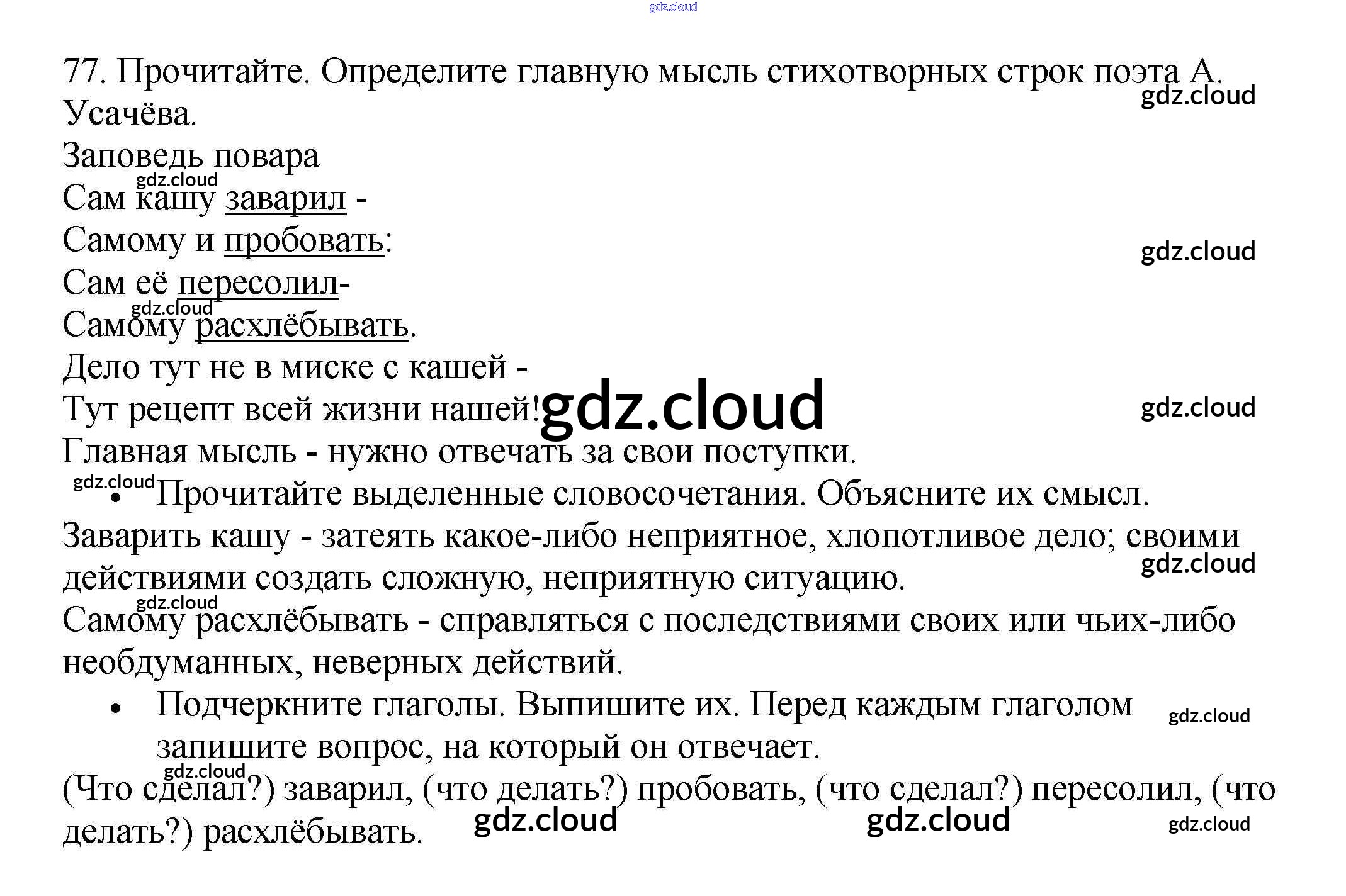 Ответ на задание 77 Рабочая тетрадь Русский язык за 3 (третий) класс Канакина Школа России 2012 Часть 1, 2