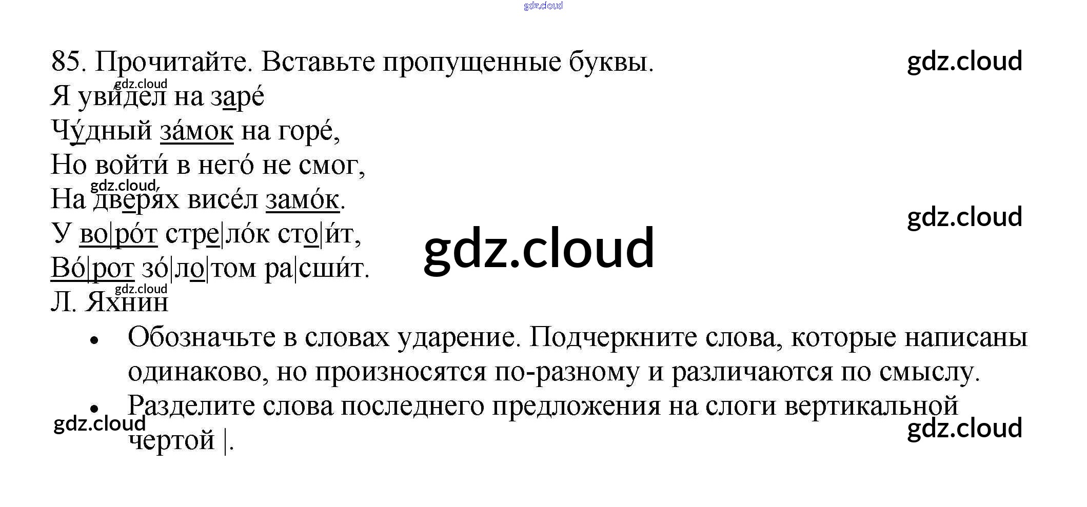 Ответ на задание 85 Рабочая тетрадь Русский язык за 3 (третий) класс Канакина Школа России 2012 Часть 1, 2