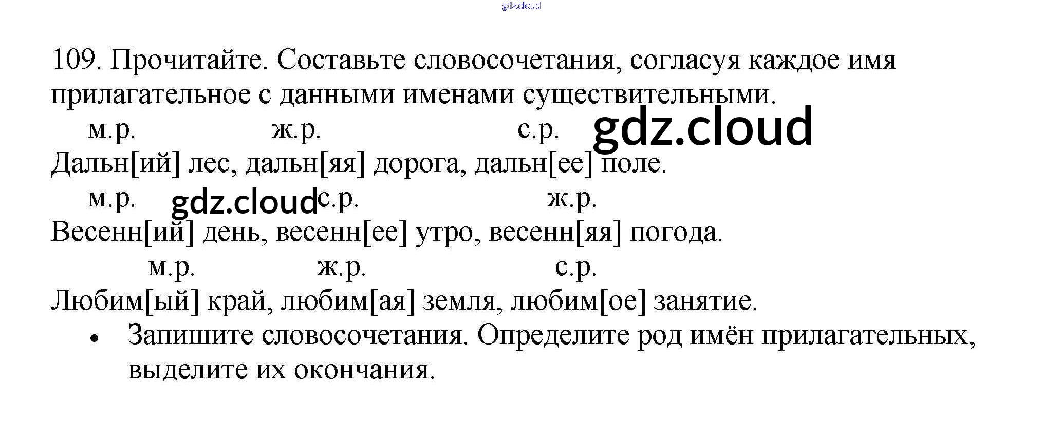 Ответ на задание 109 Рабочая тетрадь Русский язык за 3 (третий) класс Канакина Школа России 2012 Часть 1, 2