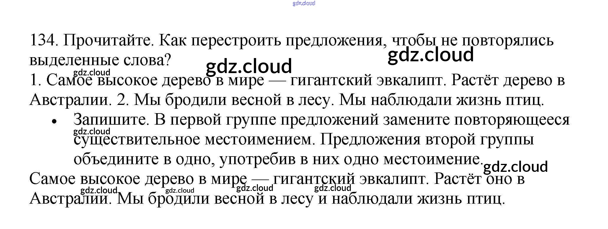 Ответ на задание 134 Рабочая тетрадь Русский язык за 3 (третий) класс Канакина Школа России 2012 Часть 1, 2