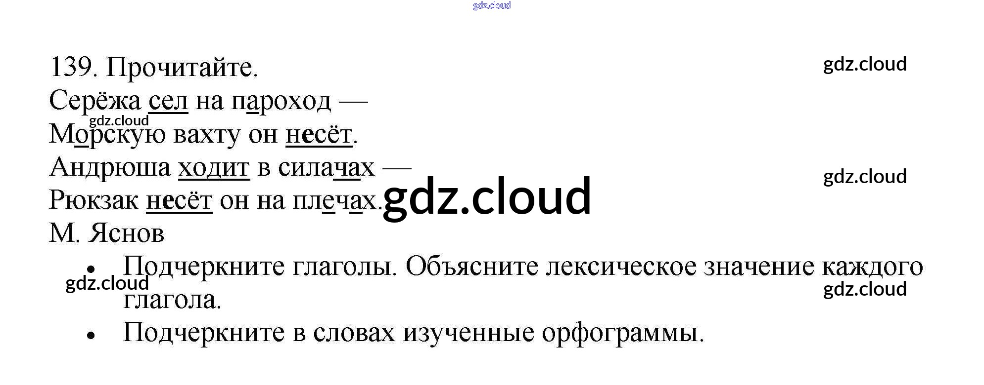 Ответ на задание 139 Рабочая тетрадь Русский язык за 3 (третий) класс Канакина Школа России 2012 Часть 1, 2