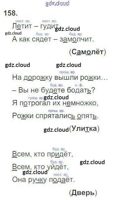Ответ на задание 158 Рабочая тетрадь Русский язык за 3 (третий) класс Канакина Школа России 2012 Часть 1, 2