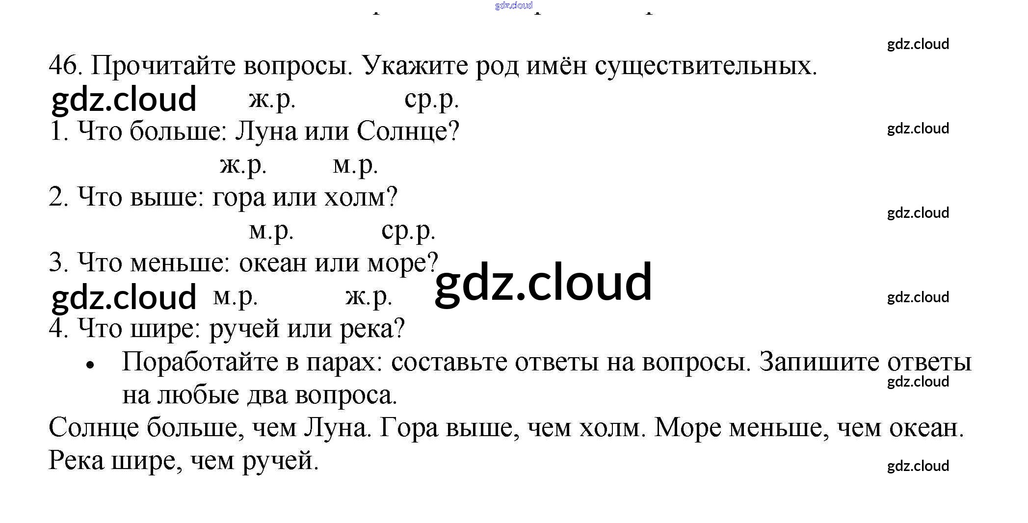 Ответ на задание 46 Рабочая тетрадь Русский язык за 3 (третий) класс Канакина Школа России 2012 Часть 1, 2