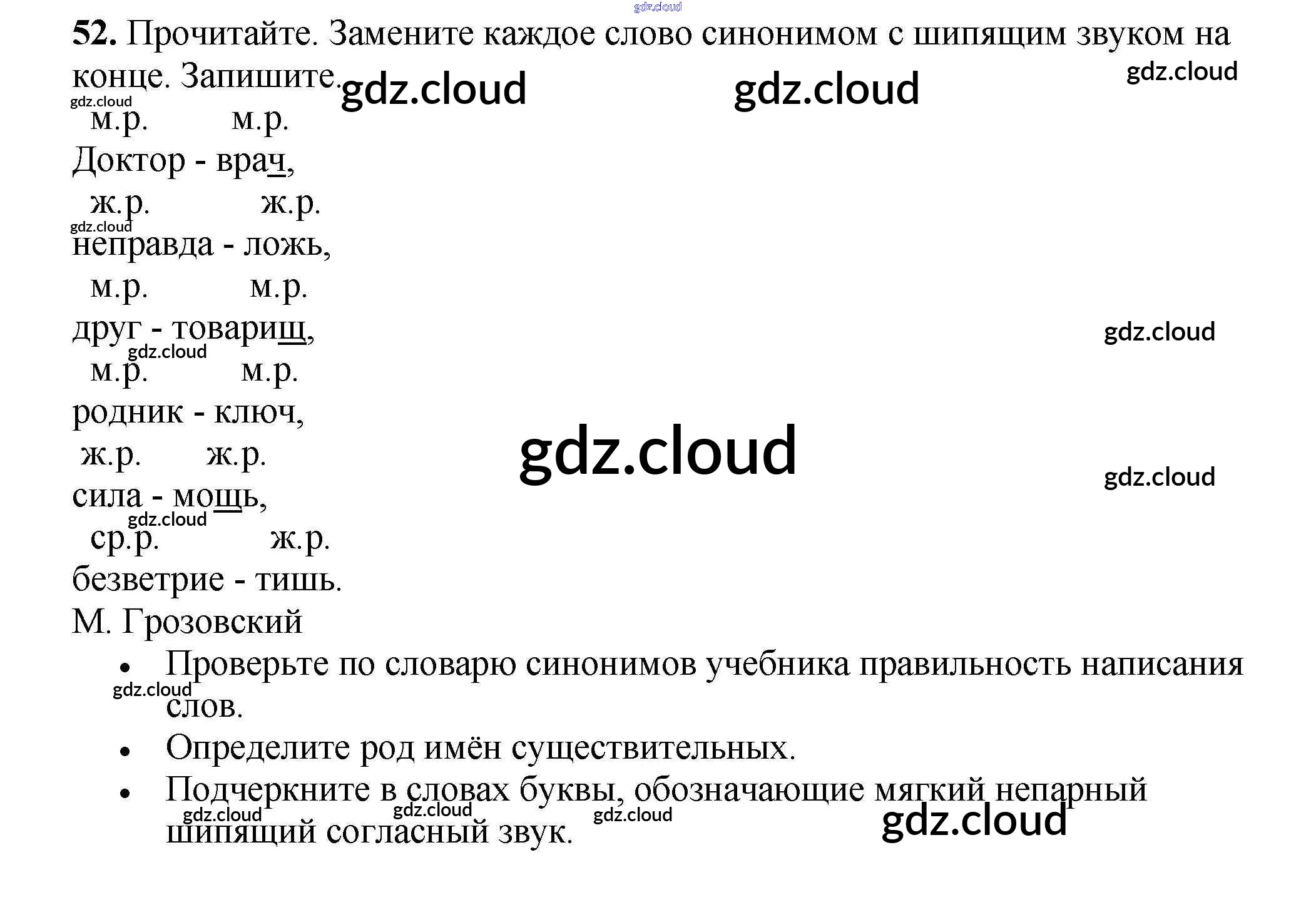 Ответ на задание 52 Рабочая тетрадь Русский язык за 3 (третий) класс Канакина Школа России 2012 Часть 1, 2