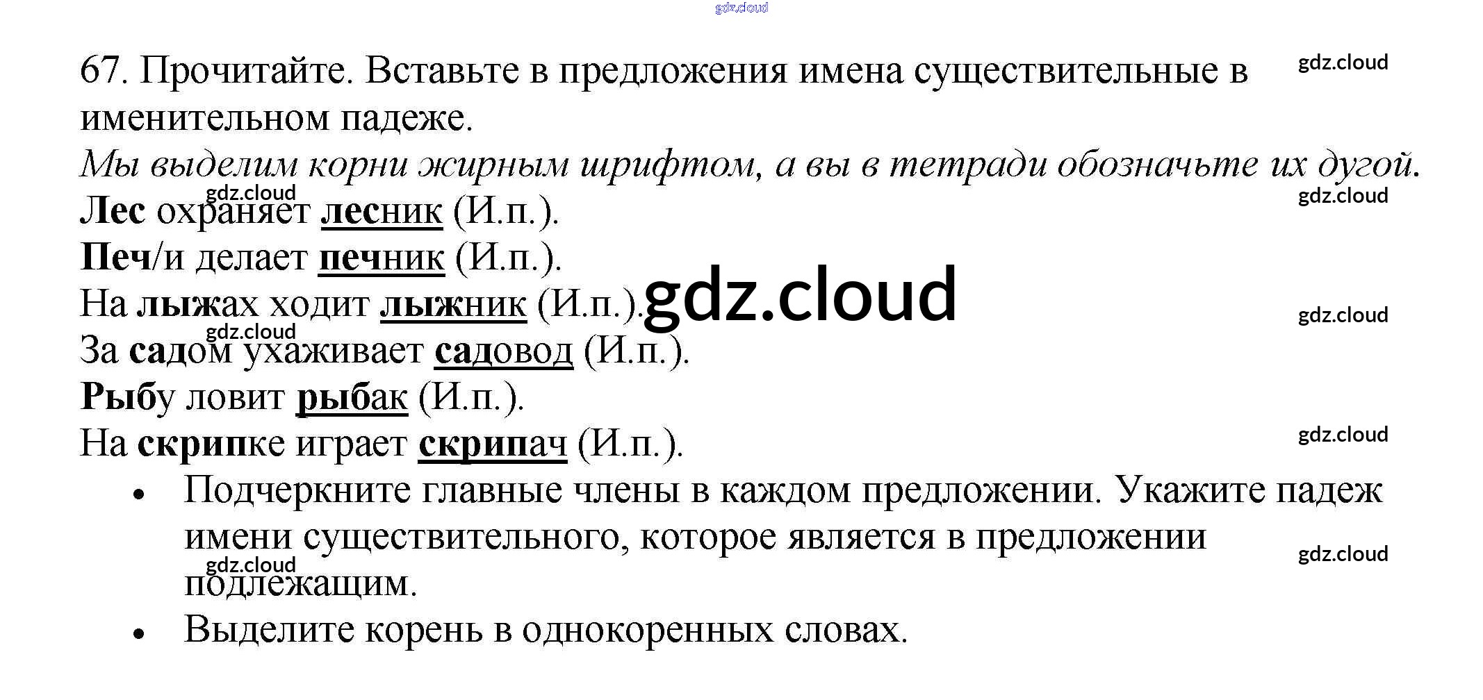 Ответ на задание 67 Рабочая тетрадь Русский язык за 3 (третий) класс Канакина Школа России 2012 Часть 1, 2