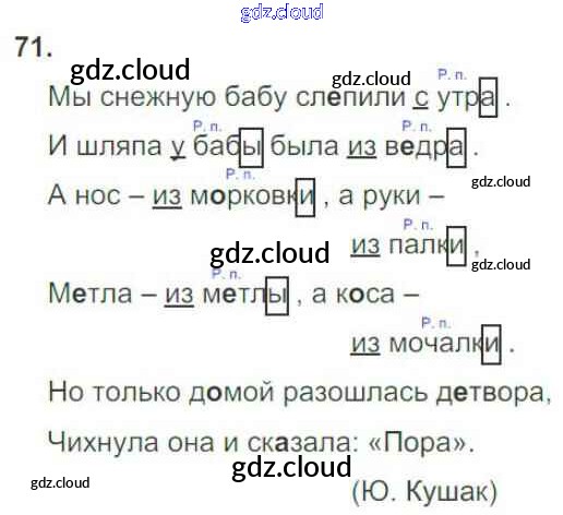 Ответ на задание 71 Рабочая тетрадь Русский язык за 3 (третий) класс Канакина Школа России 2012 Часть 1, 2