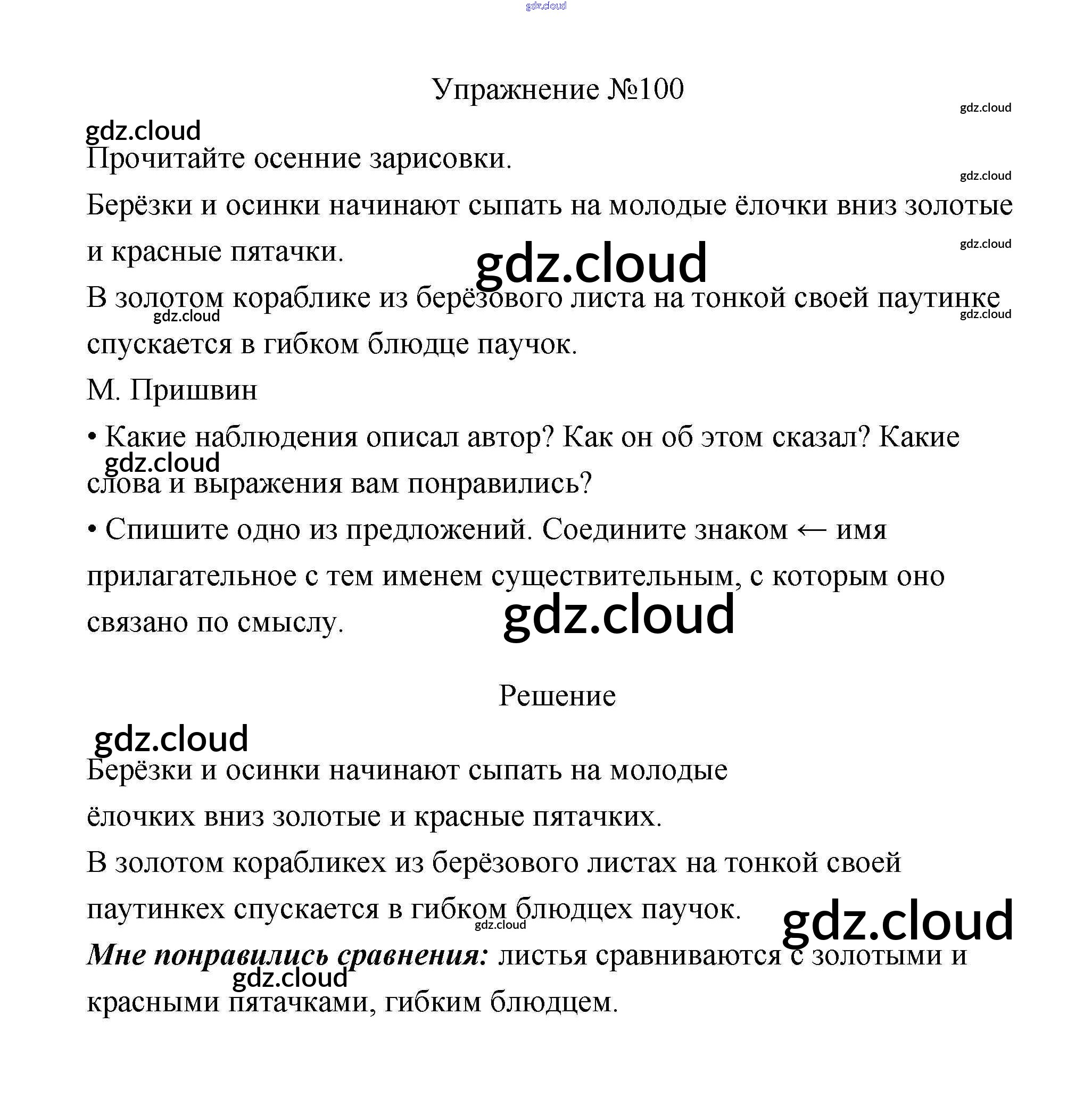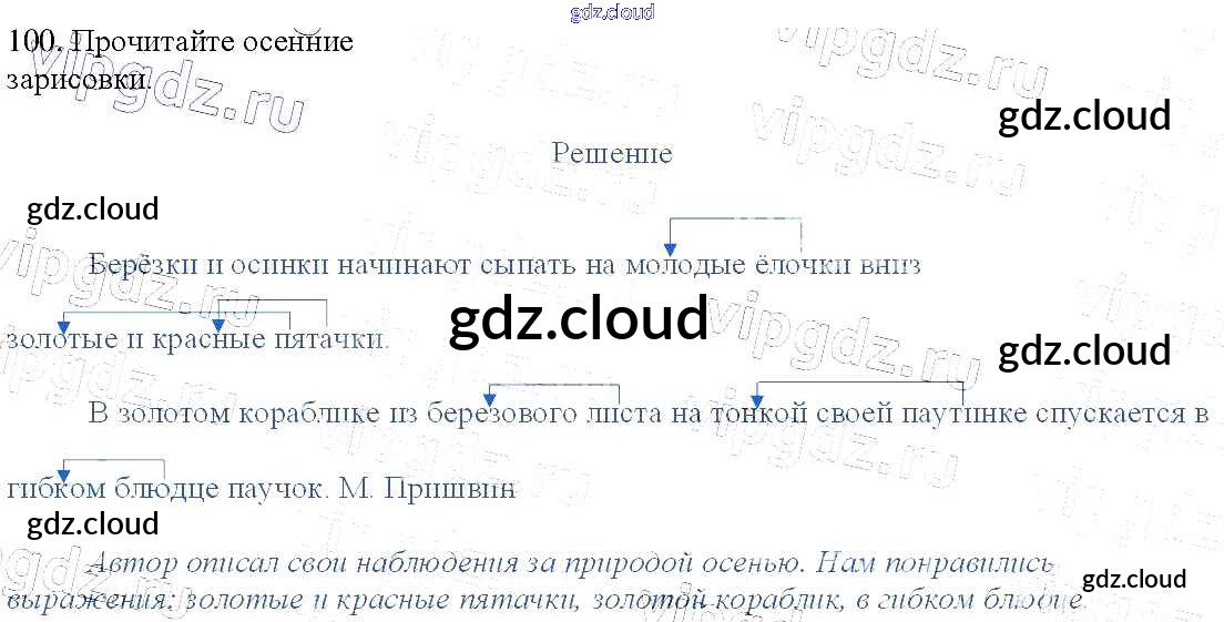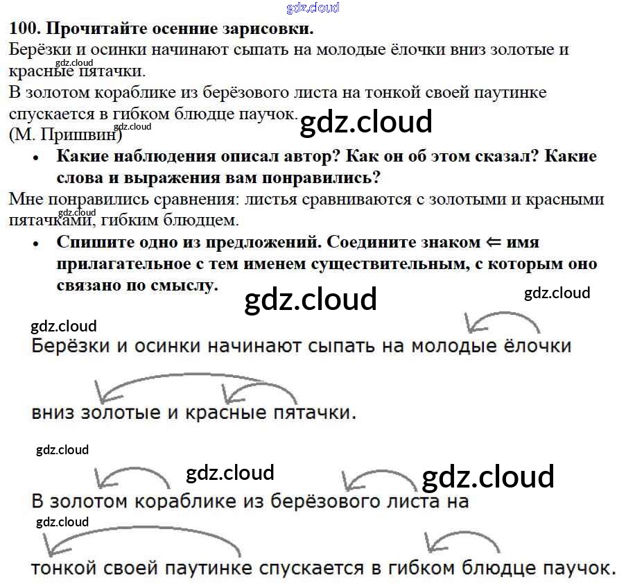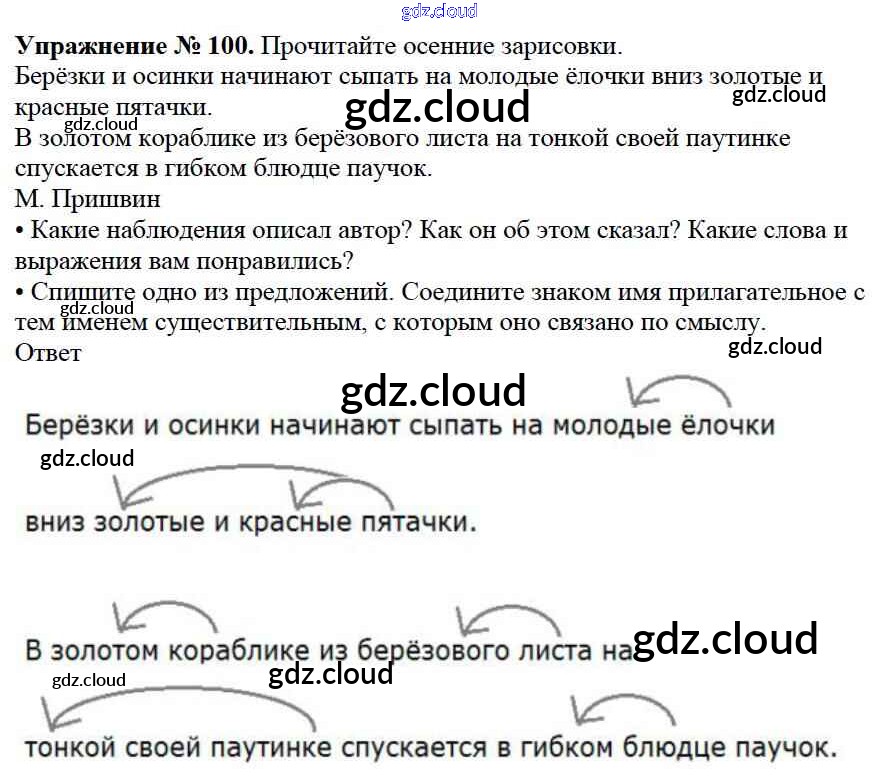 Ответ на задание 100 Учебник Русский язык за 3 (третий) класс Канакина, Горецкий Школа России 2013 Часть 1, 2