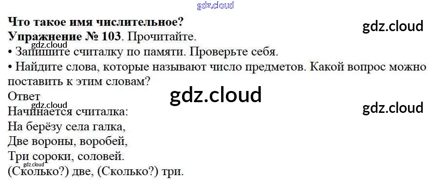 Ответ на задание 103 Учебник Русский язык за 3 (третий) класс Канакина, Горецкий Школа России 2013 Часть 1, 2