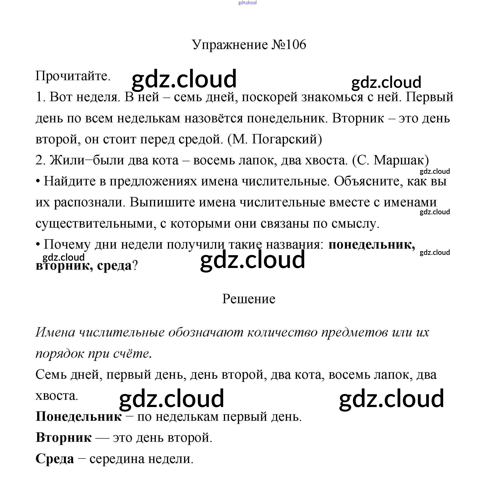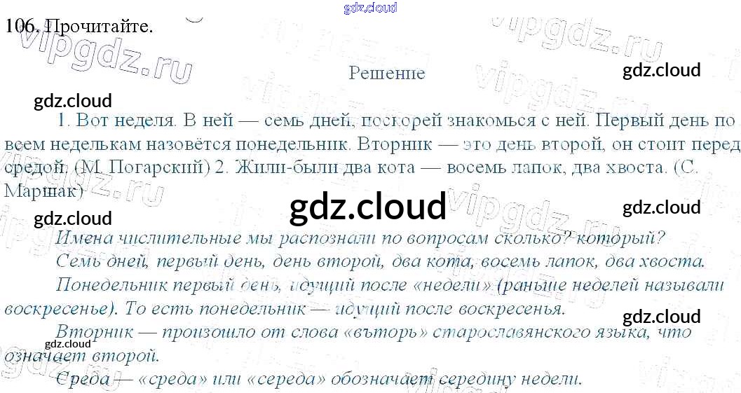 Ответ на задание 106 Учебник Русский язык за 3 (третий) класс Канакина, Горецкий Школа России 2013 Часть 1, 2