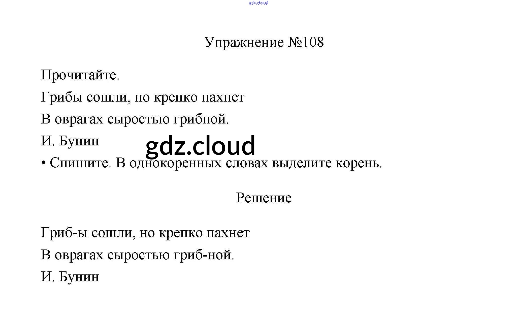 Ответ на задание 108 Учебник Русский язык за 3 (третий) класс Канакина, Горецкий Школа России 2013 Часть 1, 2