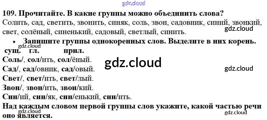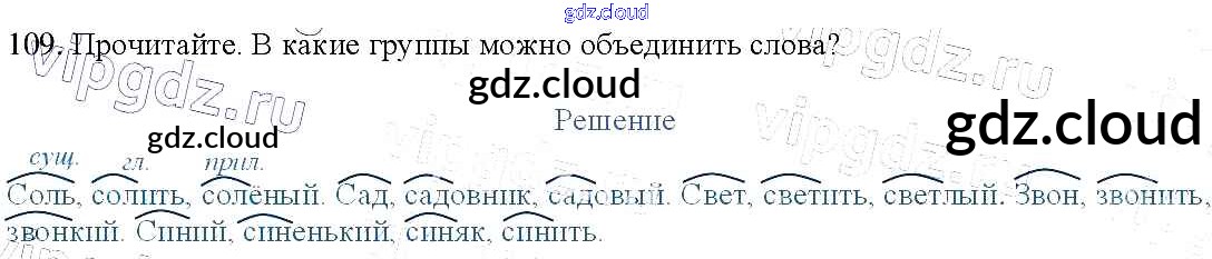 Ответ на задание 109 Учебник Русский язык за 3 (третий) класс Канакина, Горецкий Школа России 2013 Часть 1, 2