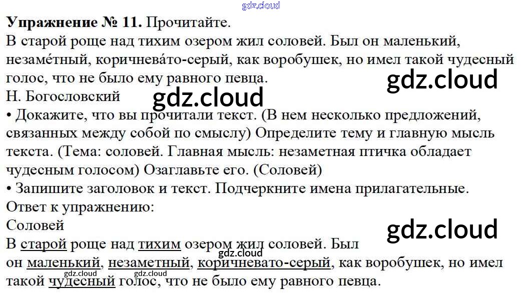 Ответ на задание 11 Учебник Русский язык за 3 (третий) класс Канакина, Горецкий Школа России 2013 Часть 1, 2