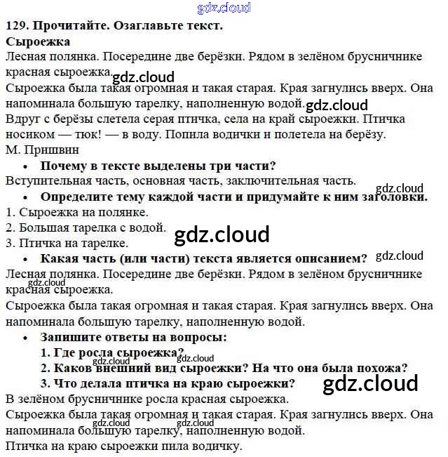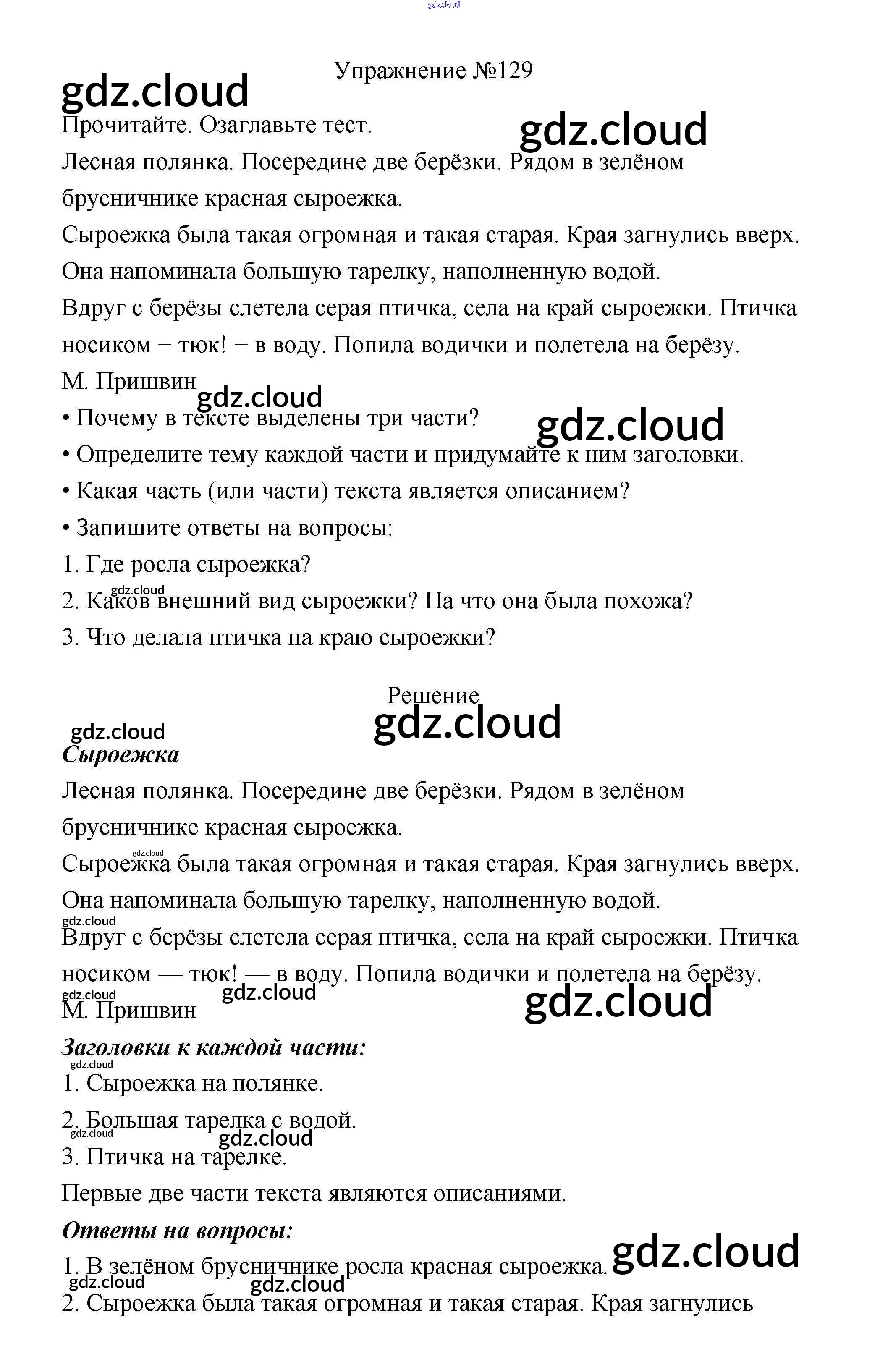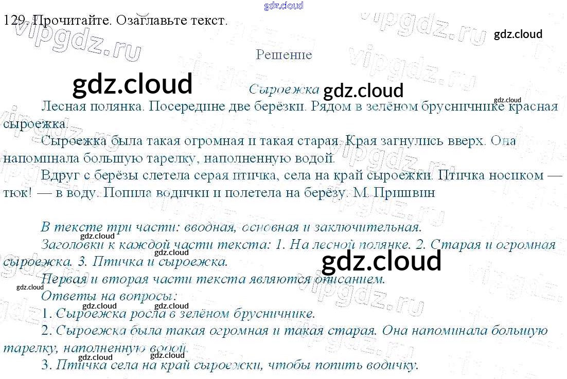 Ответ на задание 129 Учебник Русский язык за 3 (третий) класс Канакина, Горецкий Школа России 2013 Часть 1, 2