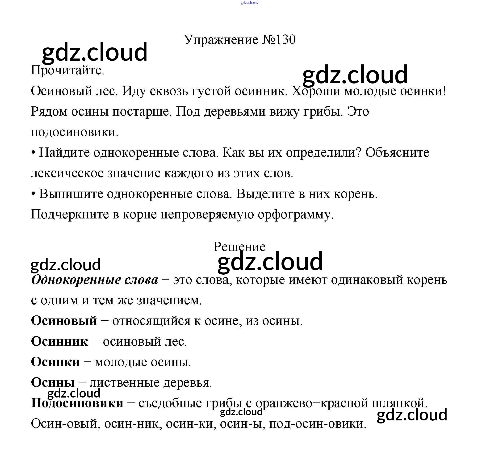Ответ на задание 130 Учебник Русский язык за 3 (третий) класс Канакина, Горецкий Школа России 2013 Часть 1, 2