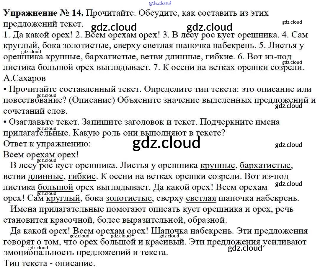 Ответ на задание 14 Учебник Русский язык за 3 (третий) класс Канакина, Горецкий Школа России 2013 Часть 1, 2