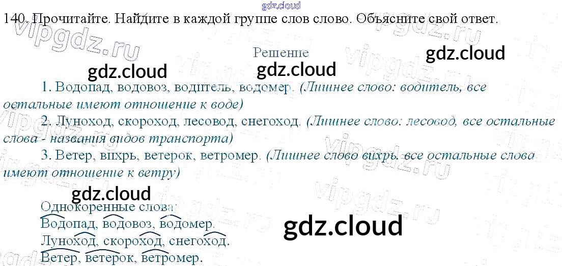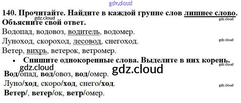 Ответ на задание 140 Учебник Русский язык за 3 (третий) класс Канакина, Горецкий Школа России 2013 Часть 1, 2