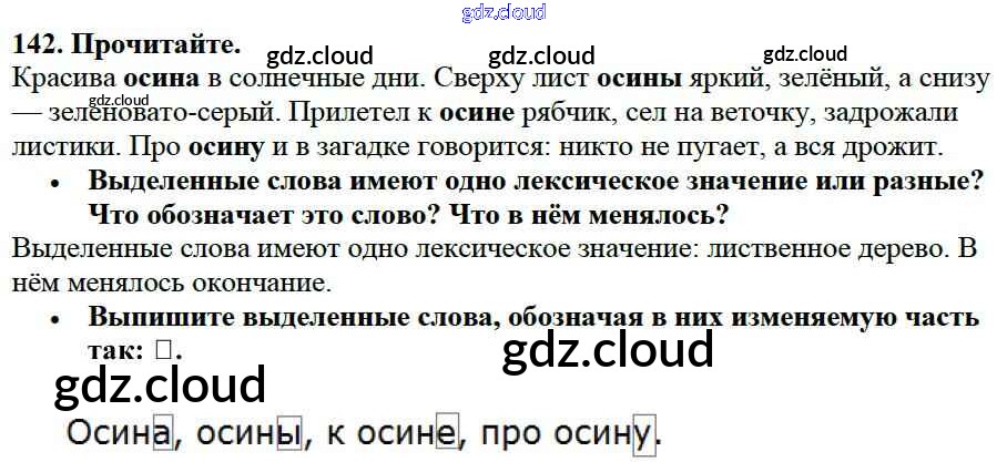 Ответ на задание 142 Учебник Русский язык за 3 (третий) класс Канакина, Горецкий Школа России 2013 Часть 1, 2