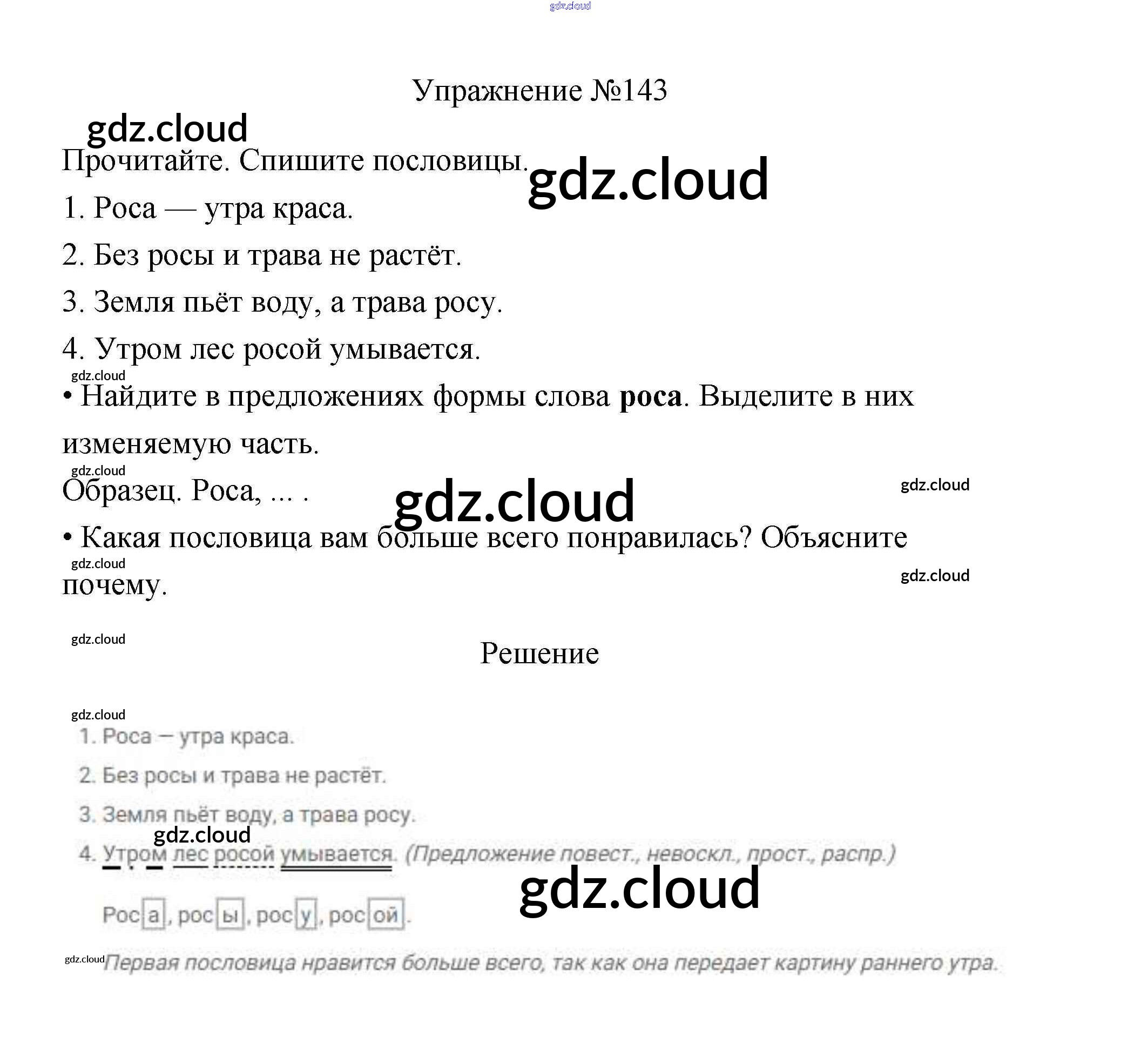 Ответ на задание 143 Учебник Русский язык за 3 (третий) класс Канакина, Горецкий Школа России 2013 Часть 1, 2