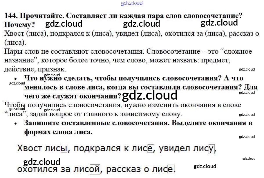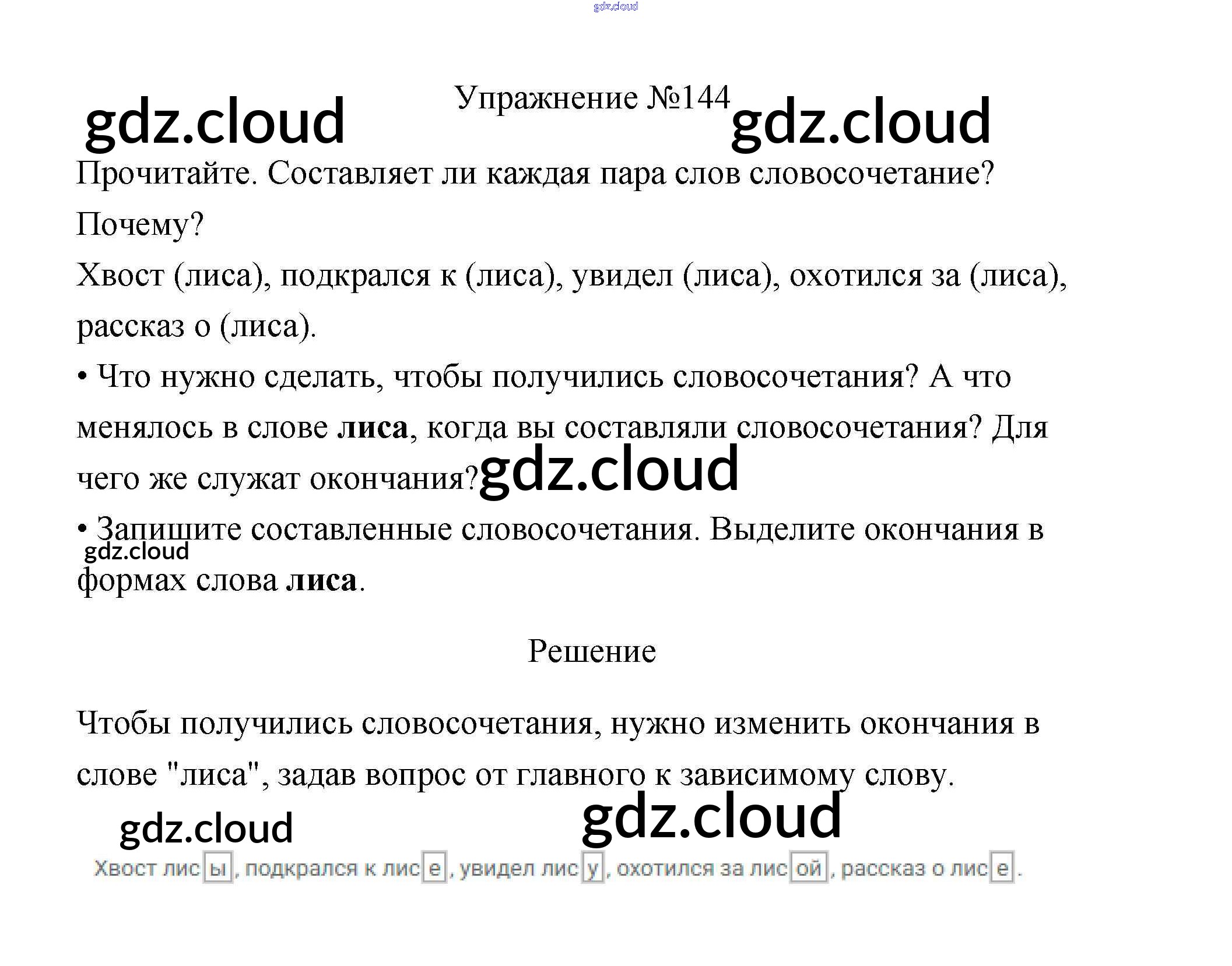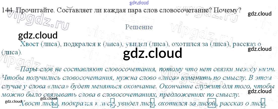 Ответ на задание 144 Учебник Русский язык за 3 (третий) класс Канакина, Горецкий Школа России 2013 Часть 1, 2