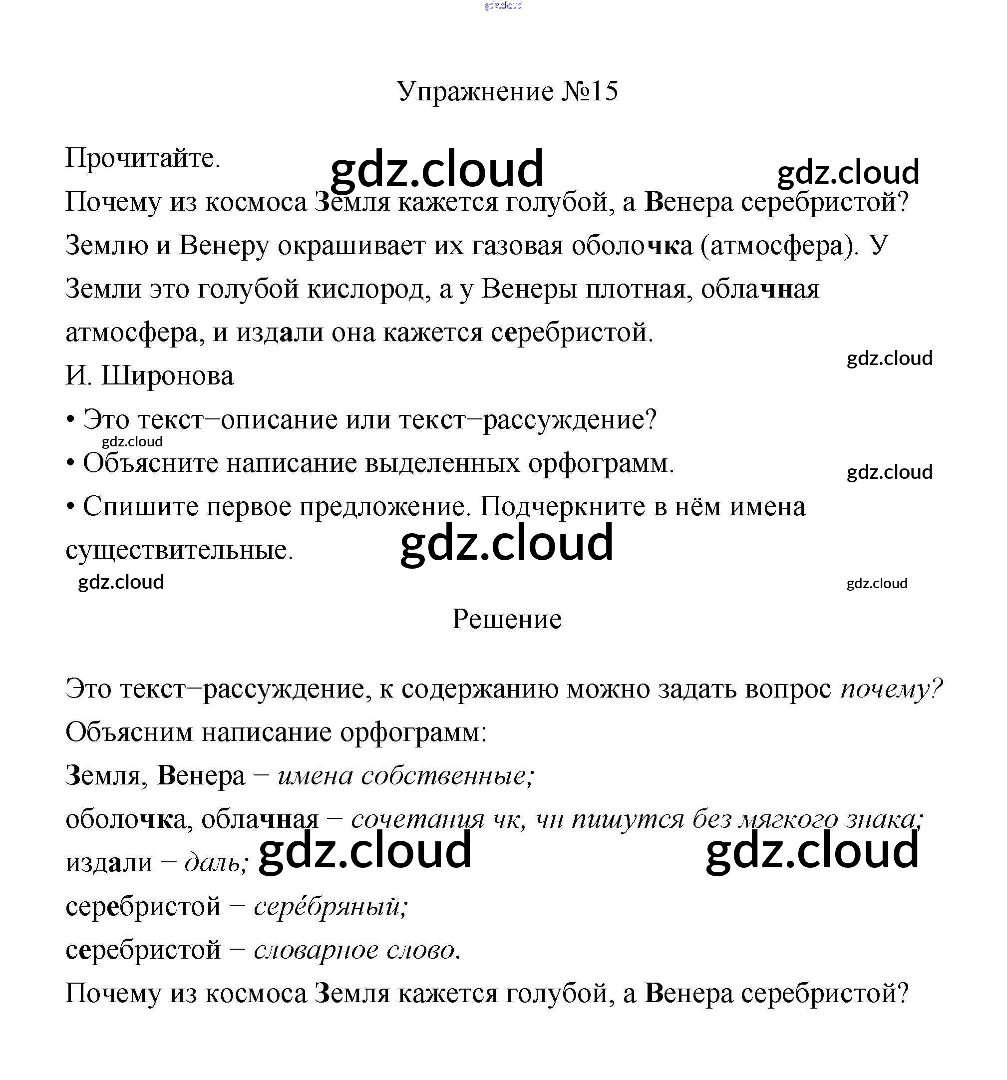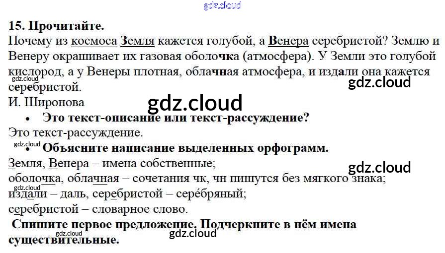 Ответ на задание 15 Учебник Русский язык за 3 (третий) класс Канакина, Горецкий Школа России 2013 Часть 1, 2