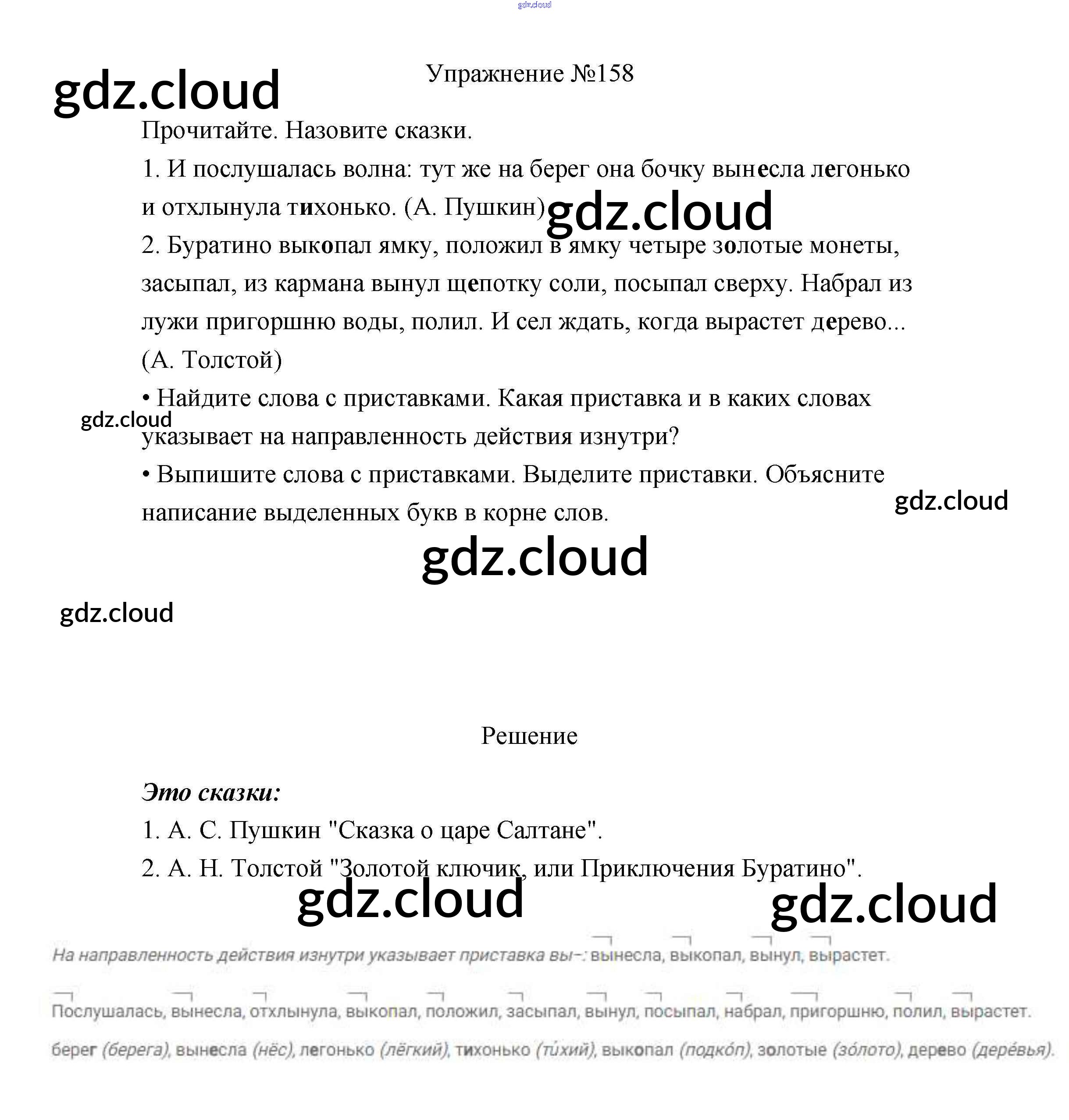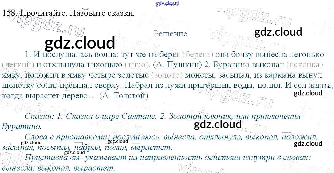 Ответ на задание 158 Учебник Русский язык за 3 (третий) класс Канакина, Горецкий Школа России 2013 Часть 1, 2