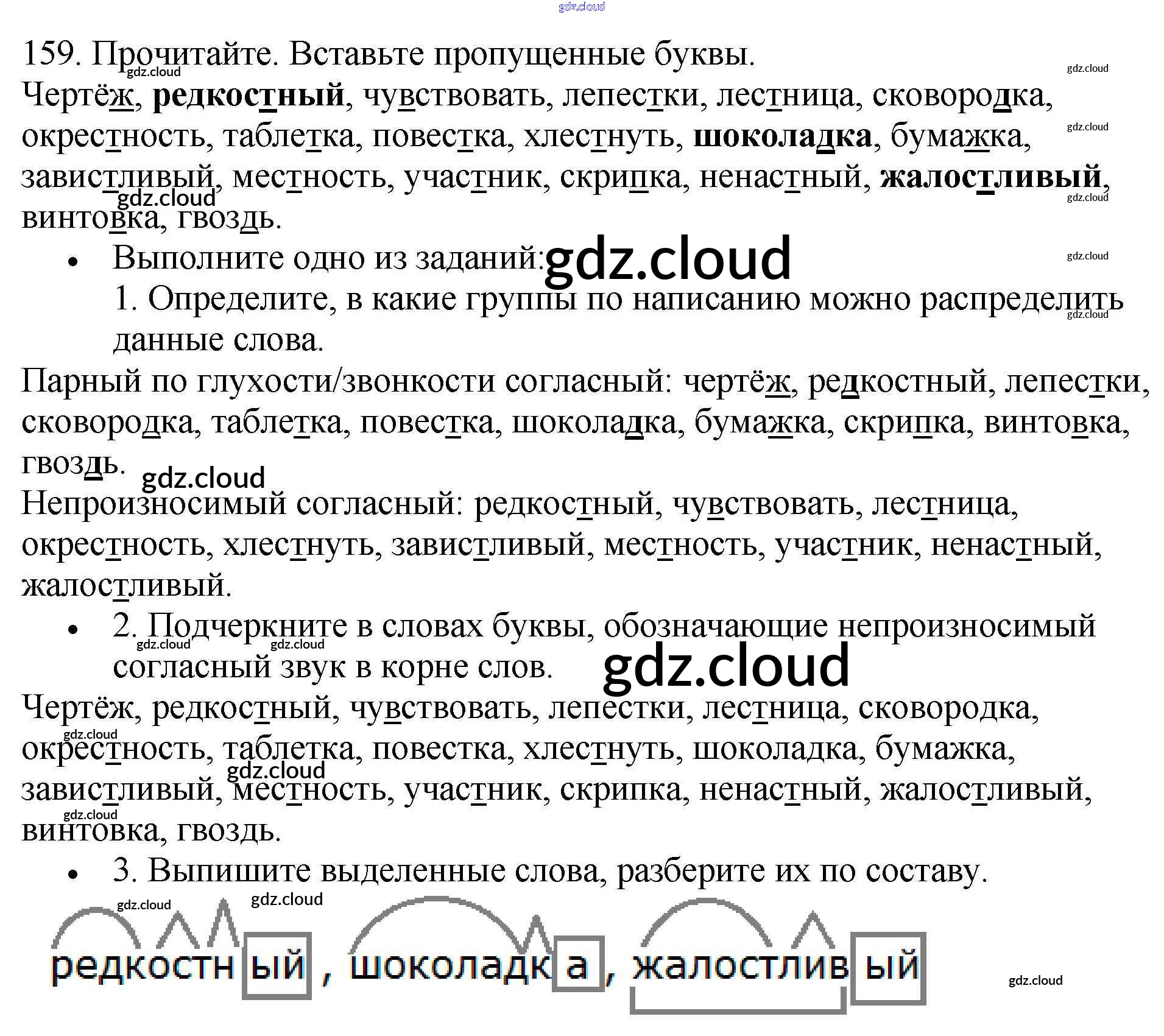 Ответ на задание 159 Учебник Русский язык за 3 (третий) класс Канакина, Горецкий Школа России 2013 Часть 1, 2