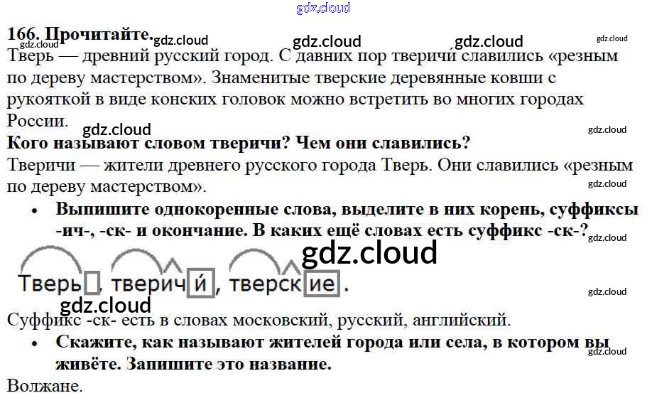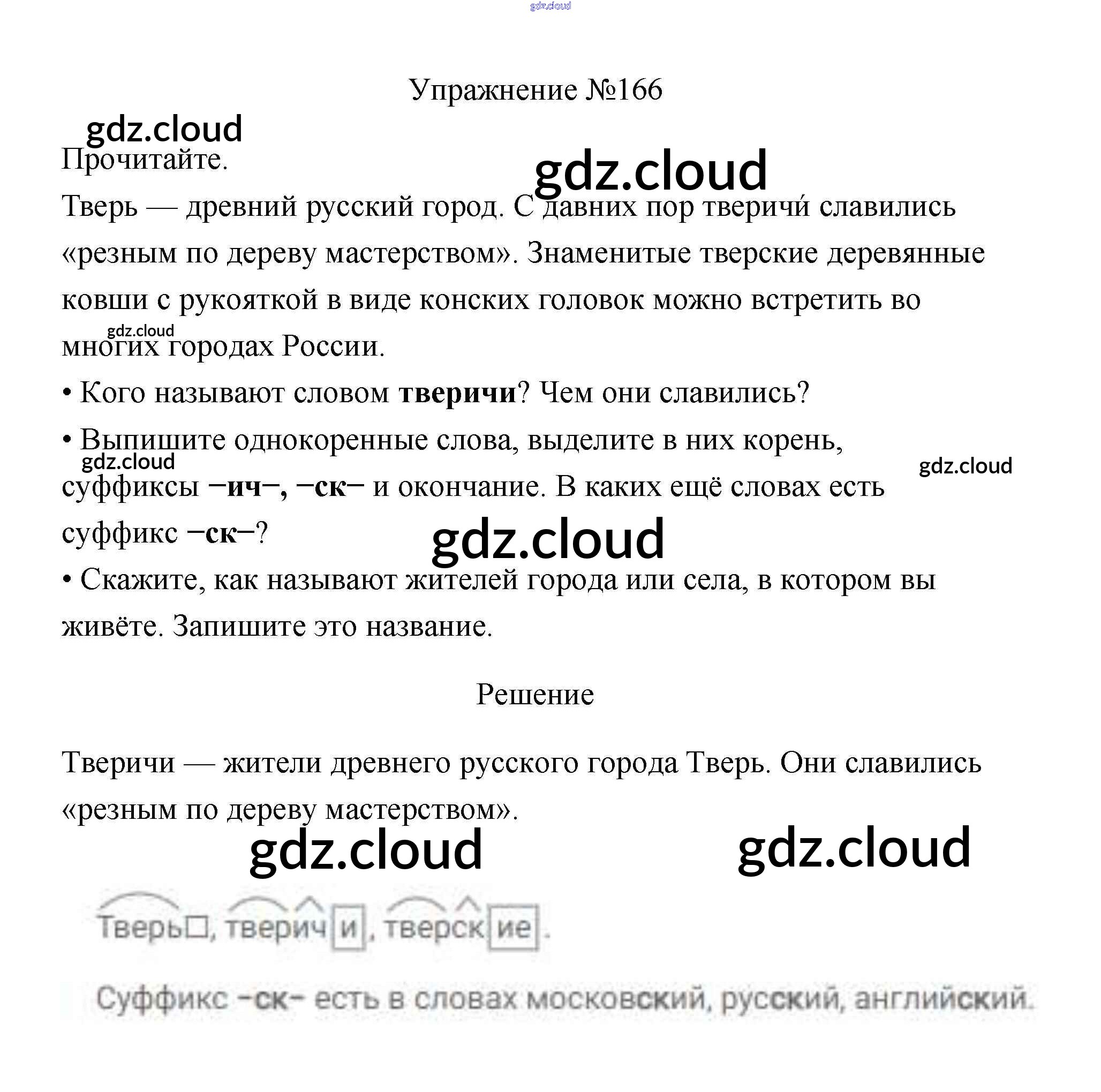 Ответ на задание 166 Учебник Русский язык за 3 (третий) класс Канакина, Горецкий Школа России 2013 Часть 1, 2