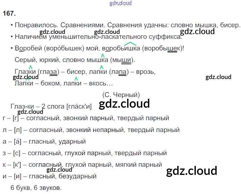Ответ на задание 167 Учебник Русский язык за 3 (третий) класс Канакина, Горецкий Школа России 2013 Часть 1, 2