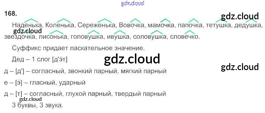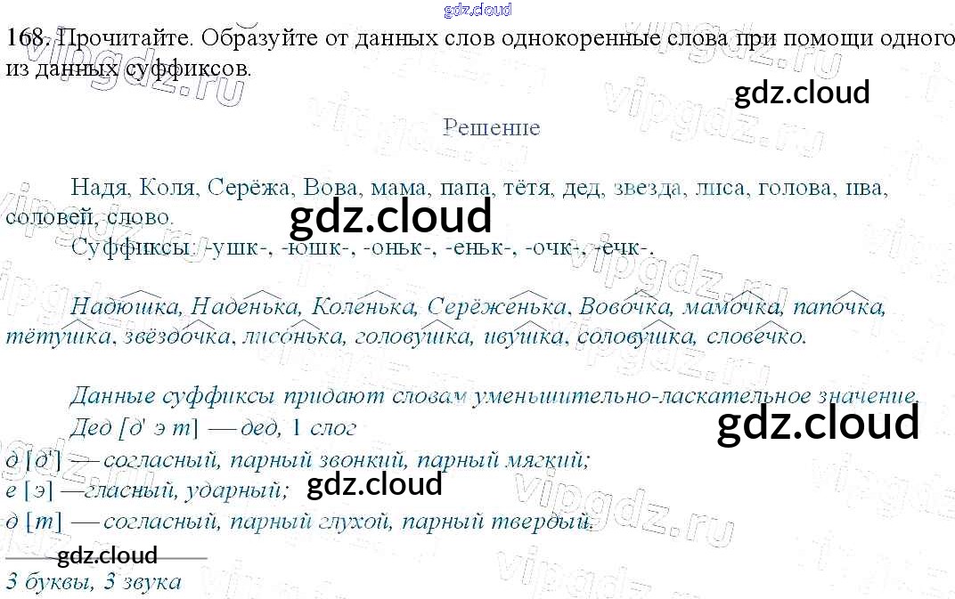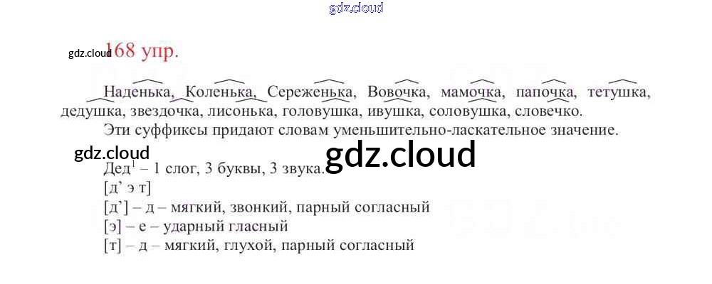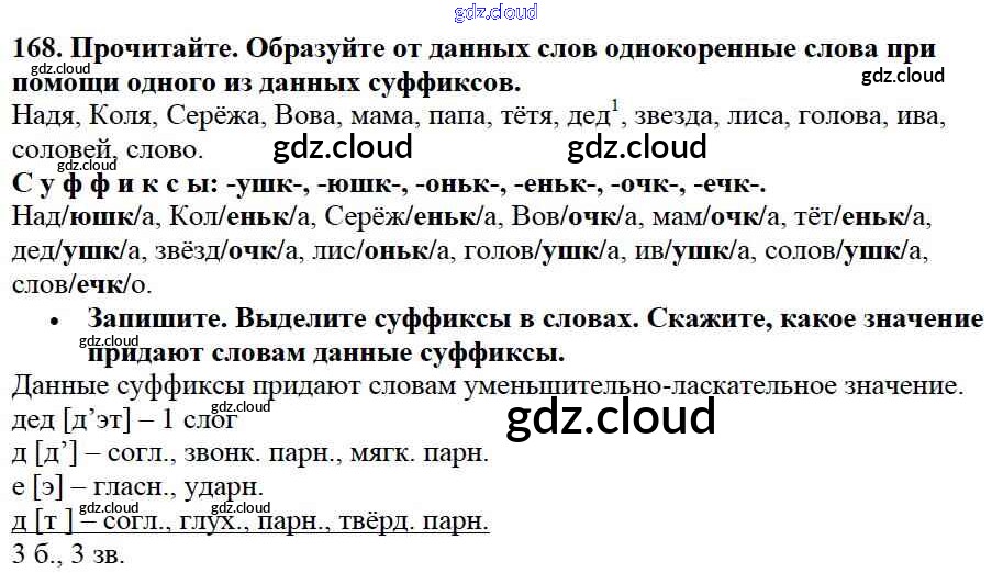 Ответ на задание 168 Учебник Русский язык за 3 (третий) класс Канакина, Горецкий Школа России 2013 Часть 1, 2