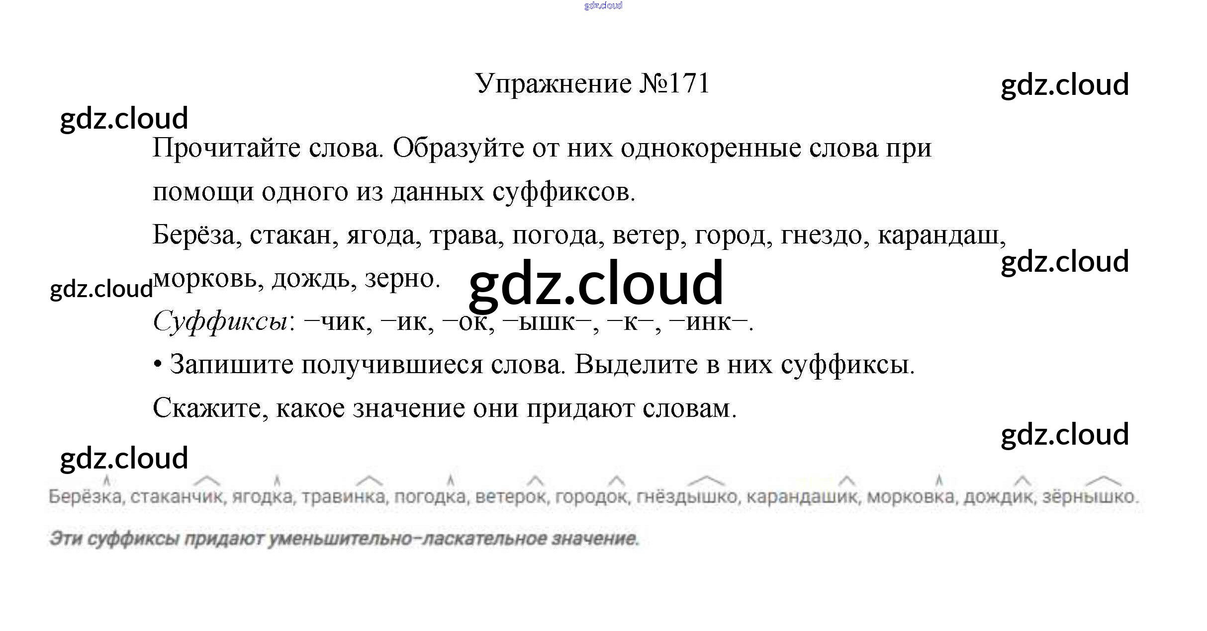 Ответ на задание 171 Учебник Русский язык за 3 (третий) класс Канакина, Горецкий Школа России 2013 Часть 1, 2
