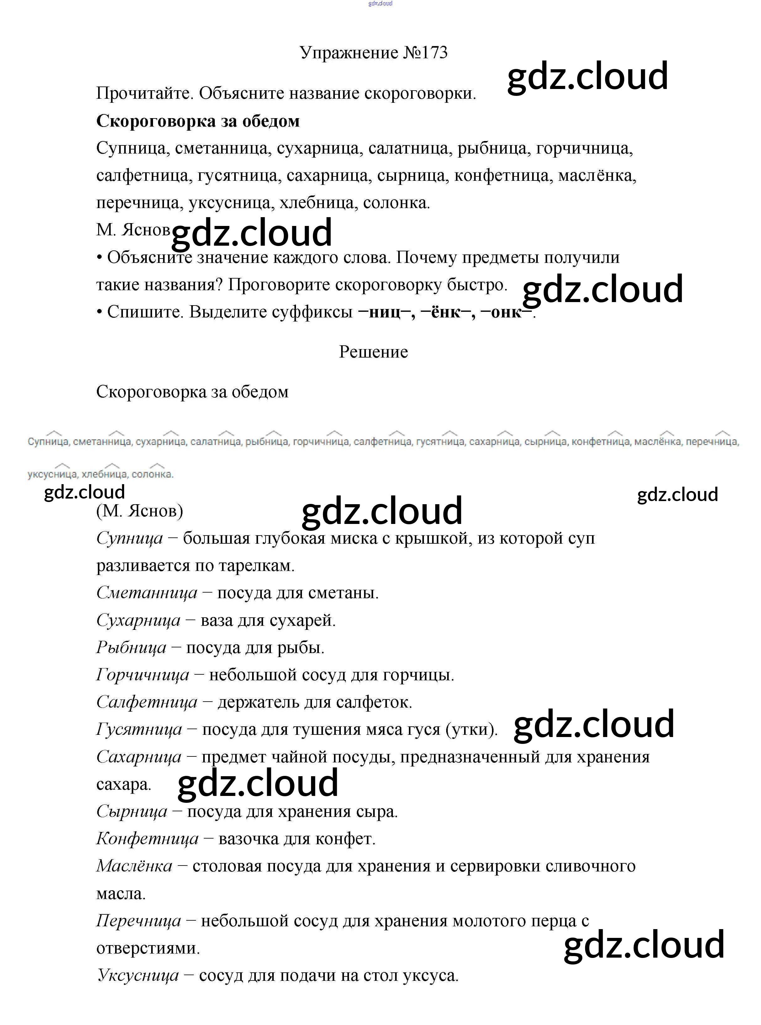 Ответ на задание 173 Учебник Русский язык за 3 (третий) класс Канакина, Горецкий Школа России 2013 Часть 1, 2