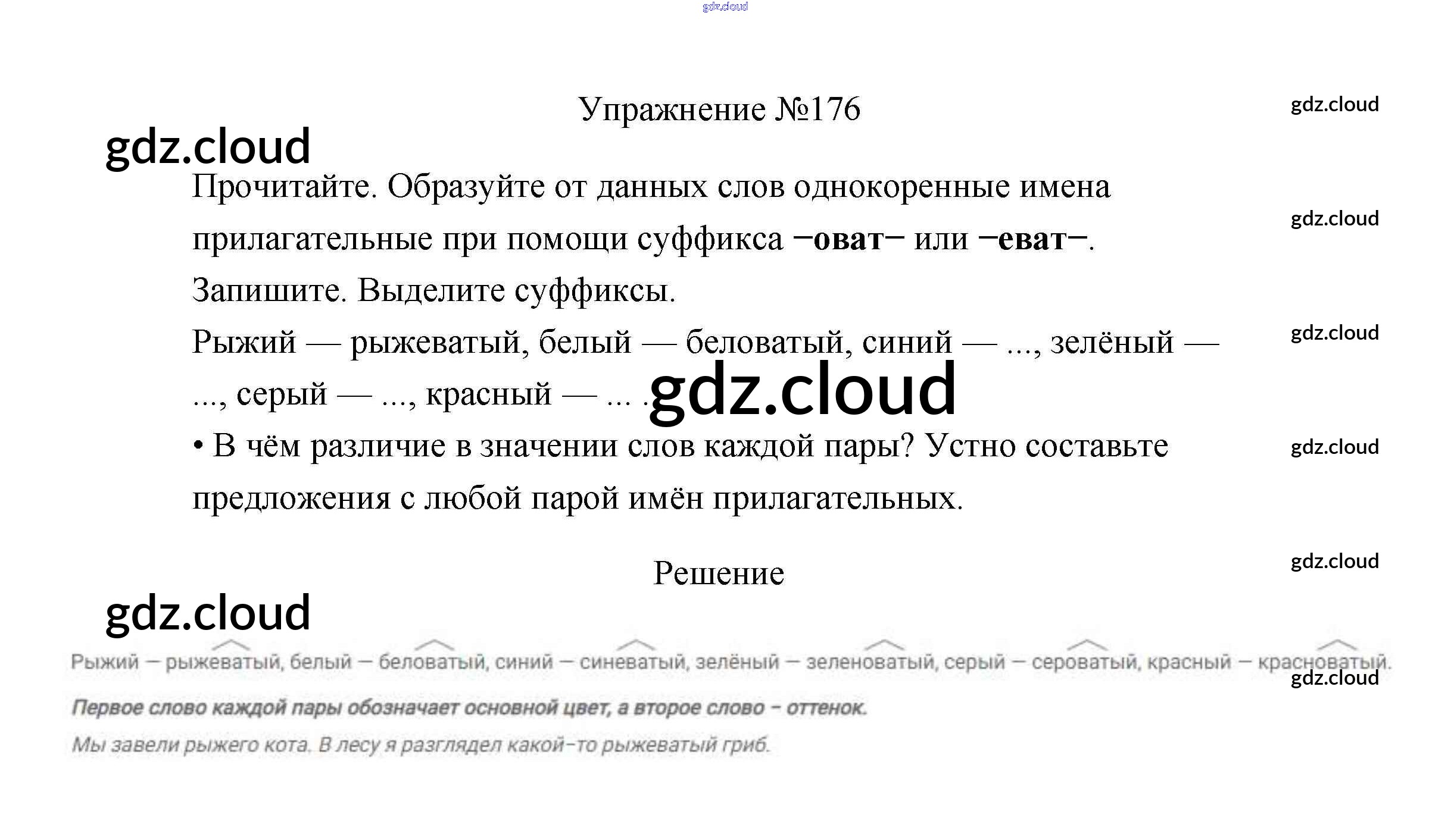 Ответ на задание 176 Учебник Русский язык за 3 (третий) класс Канакина, Горецкий Школа России 2013 Часть 1, 2