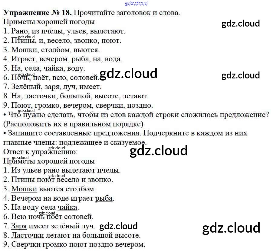 Ответ на задание 18 Учебник Русский язык за 3 (третий) класс Канакина, Горецкий Школа России 2013 Часть 1, 2