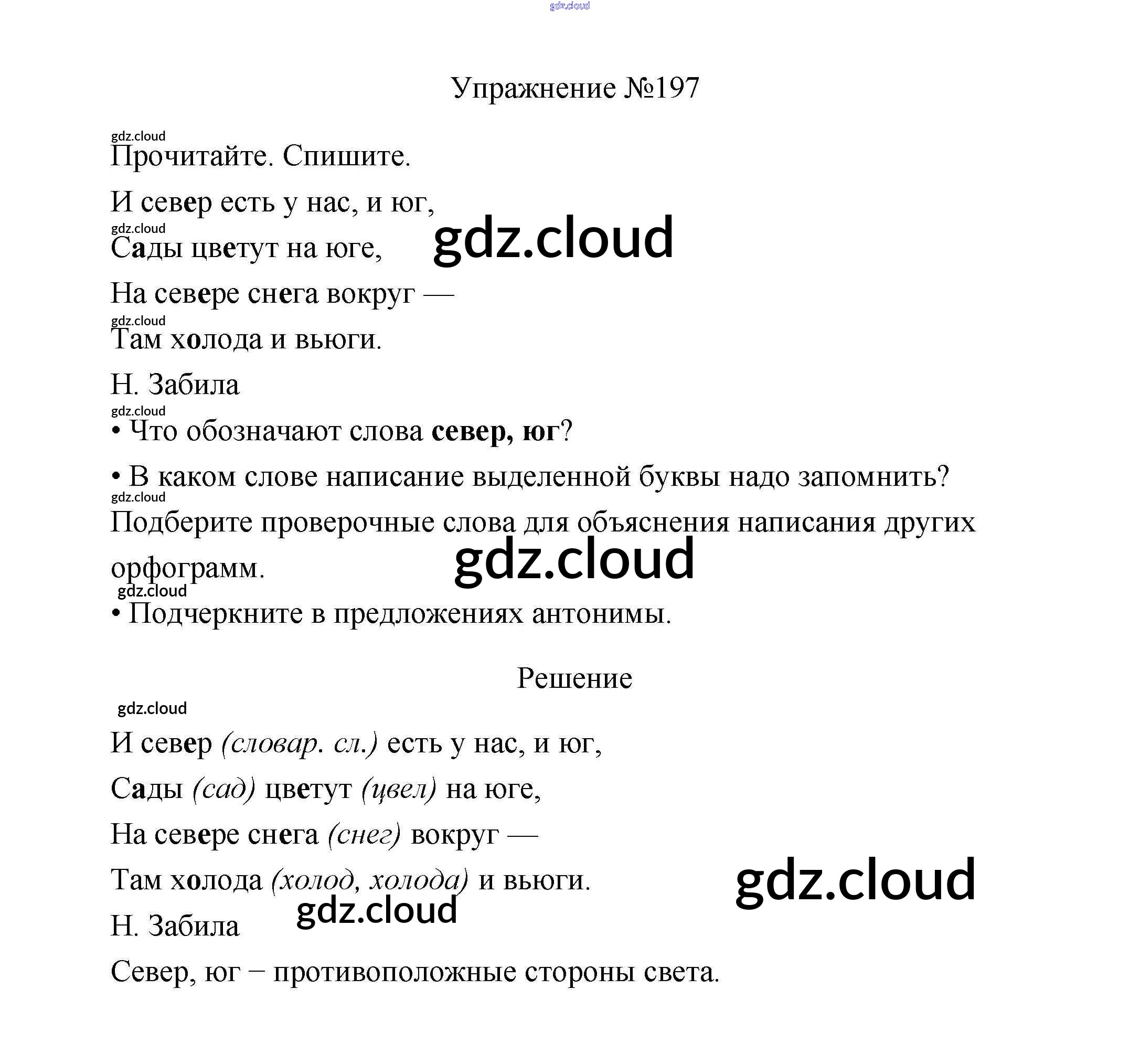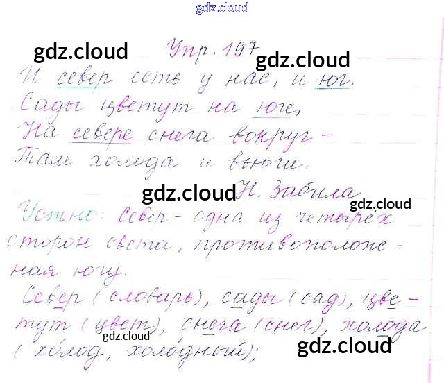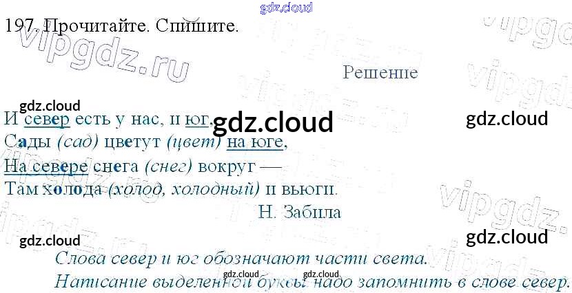 Ответ на задание 197 Учебник Русский язык за 3 (третий) класс Канакина, Горецкий Школа России 2013 Часть 1, 2