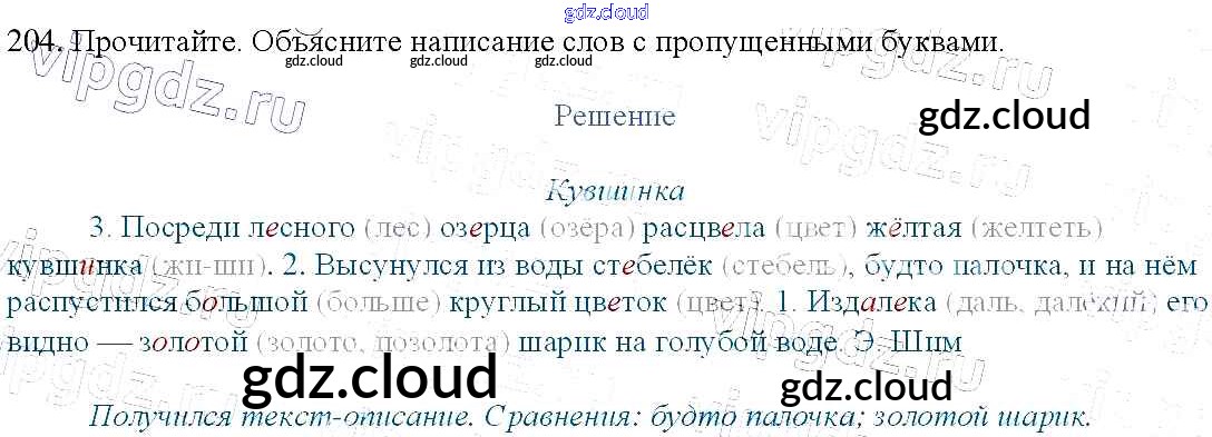 Ответ на задание 204 Учебник Русский язык за 3 (третий) класс Канакина, Горецкий Школа России 2013 Часть 1, 2