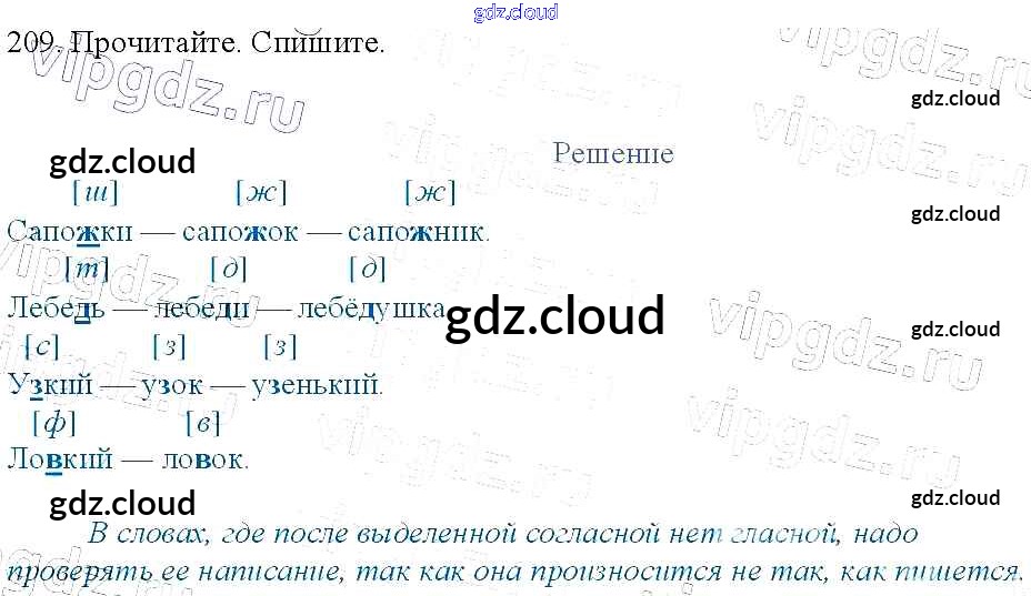 Ответ на задание 209 Учебник Русский язык за 3 (третий) класс Канакина, Горецкий Школа России 2013 Часть 1, 2