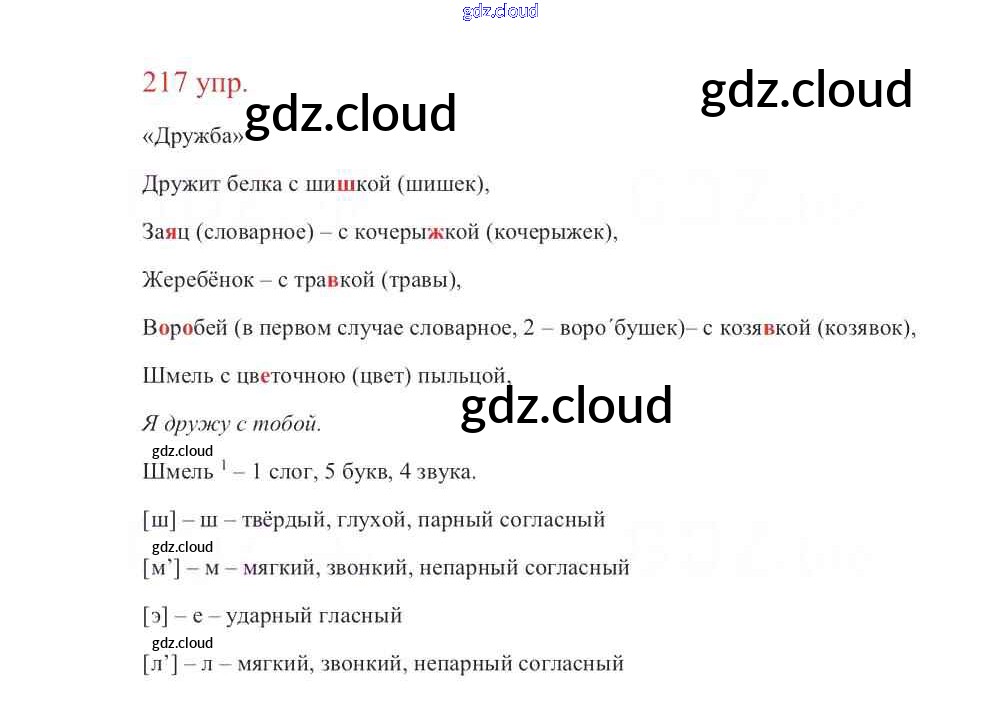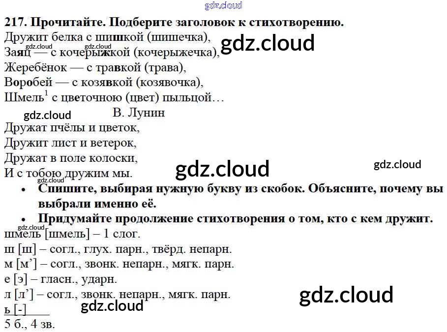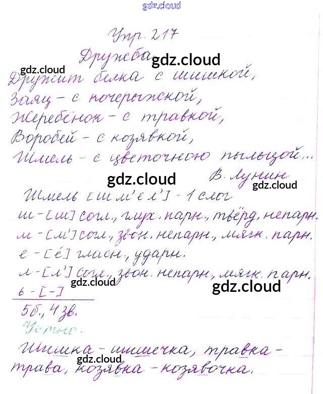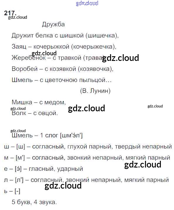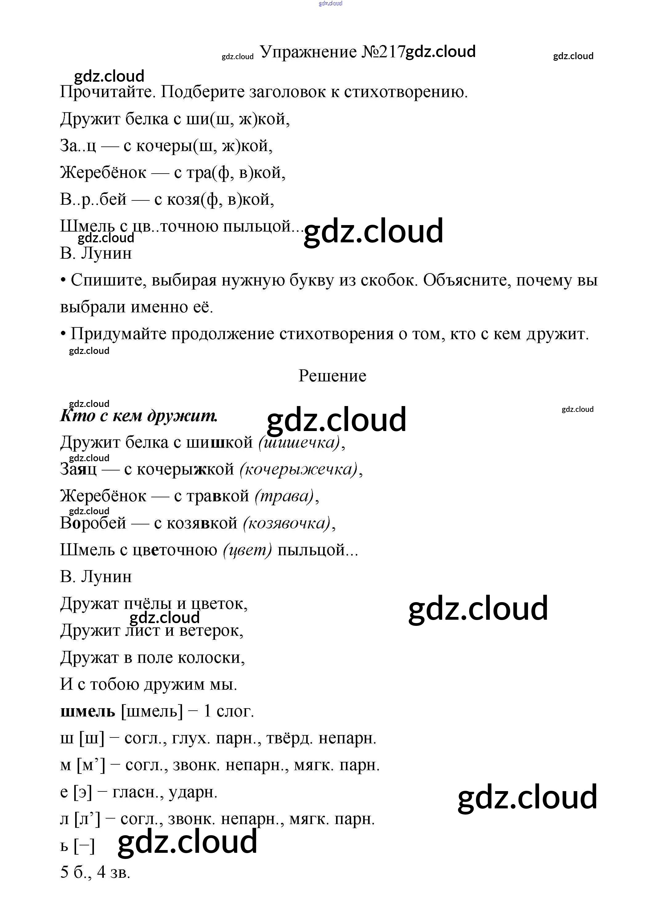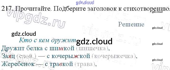 Ответ на задание 217 Учебник Русский язык за 3 (третий) класс Канакина, Горецкий Школа России 2013 Часть 1, 2