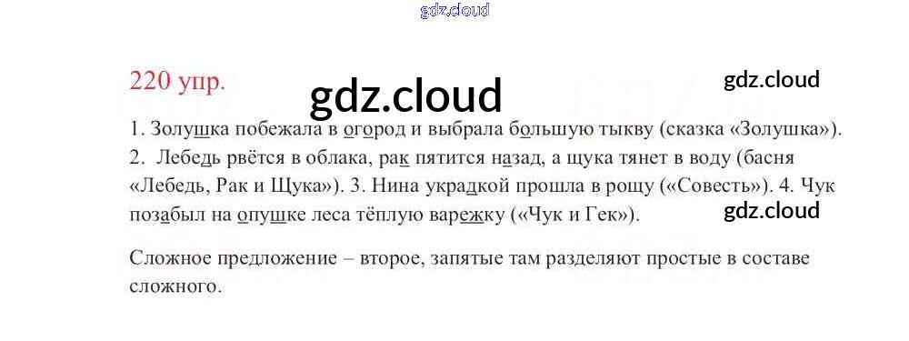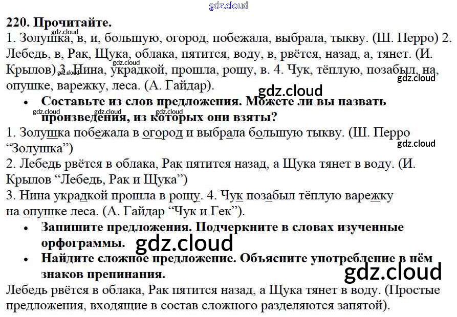 Ответ на задание 220 Учебник Русский язык за 3 (третий) класс Канакина, Горецкий Школа России 2013 Часть 1, 2