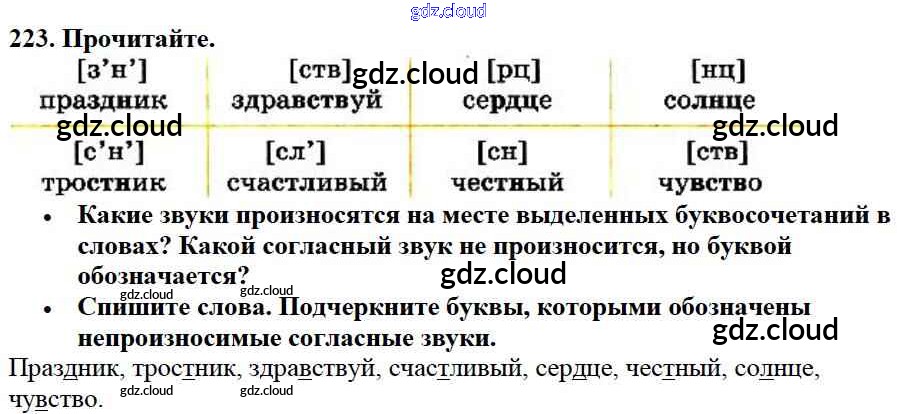 Ответ на задание 223 Учебник Русский язык за 3 (третий) класс Канакина, Горецкий Школа России 2013 Часть 1, 2