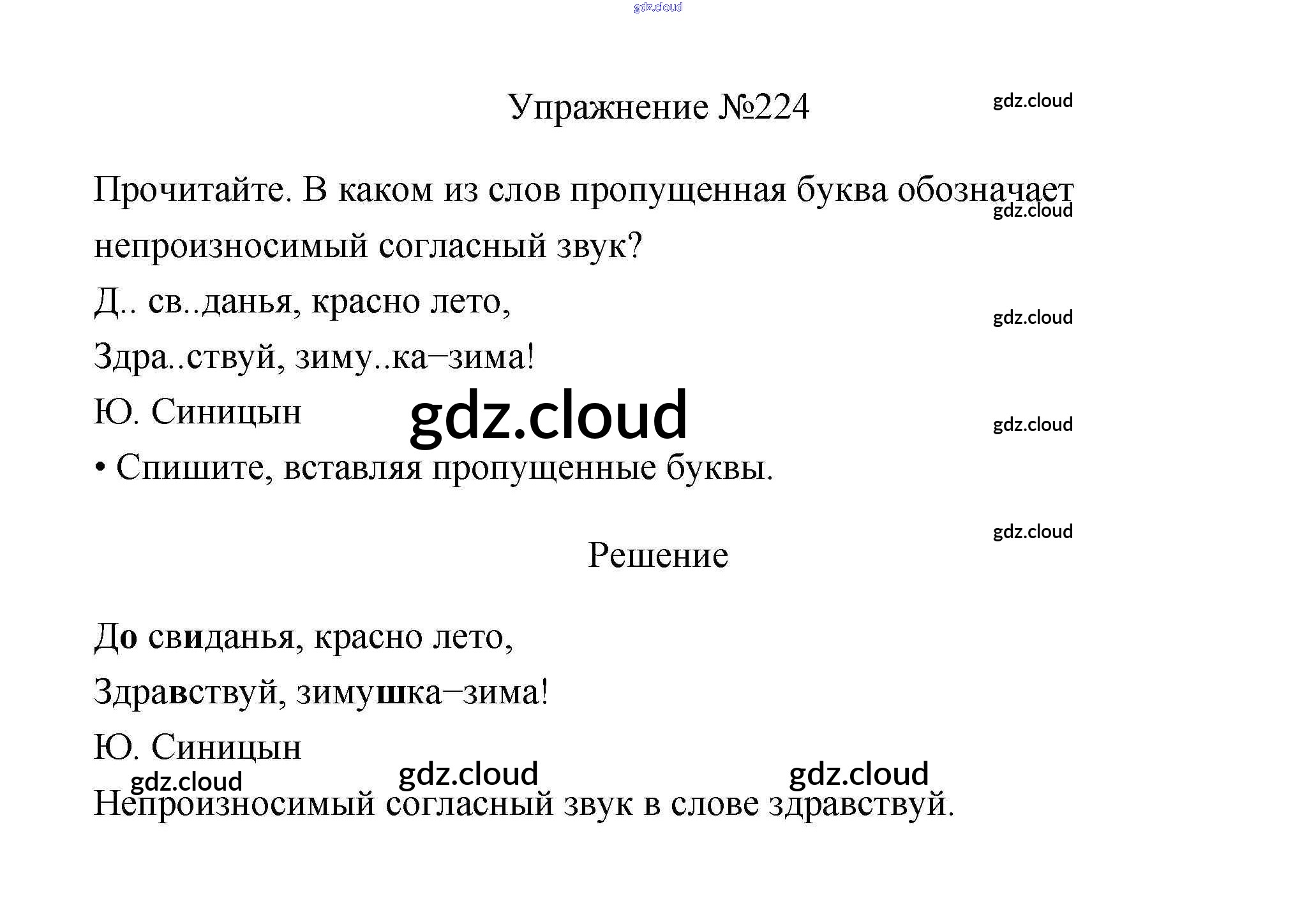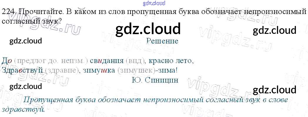 Ответ на задание 224 Учебник Русский язык за 3 (третий) класс Канакина, Горецкий Школа России 2013 Часть 1, 2