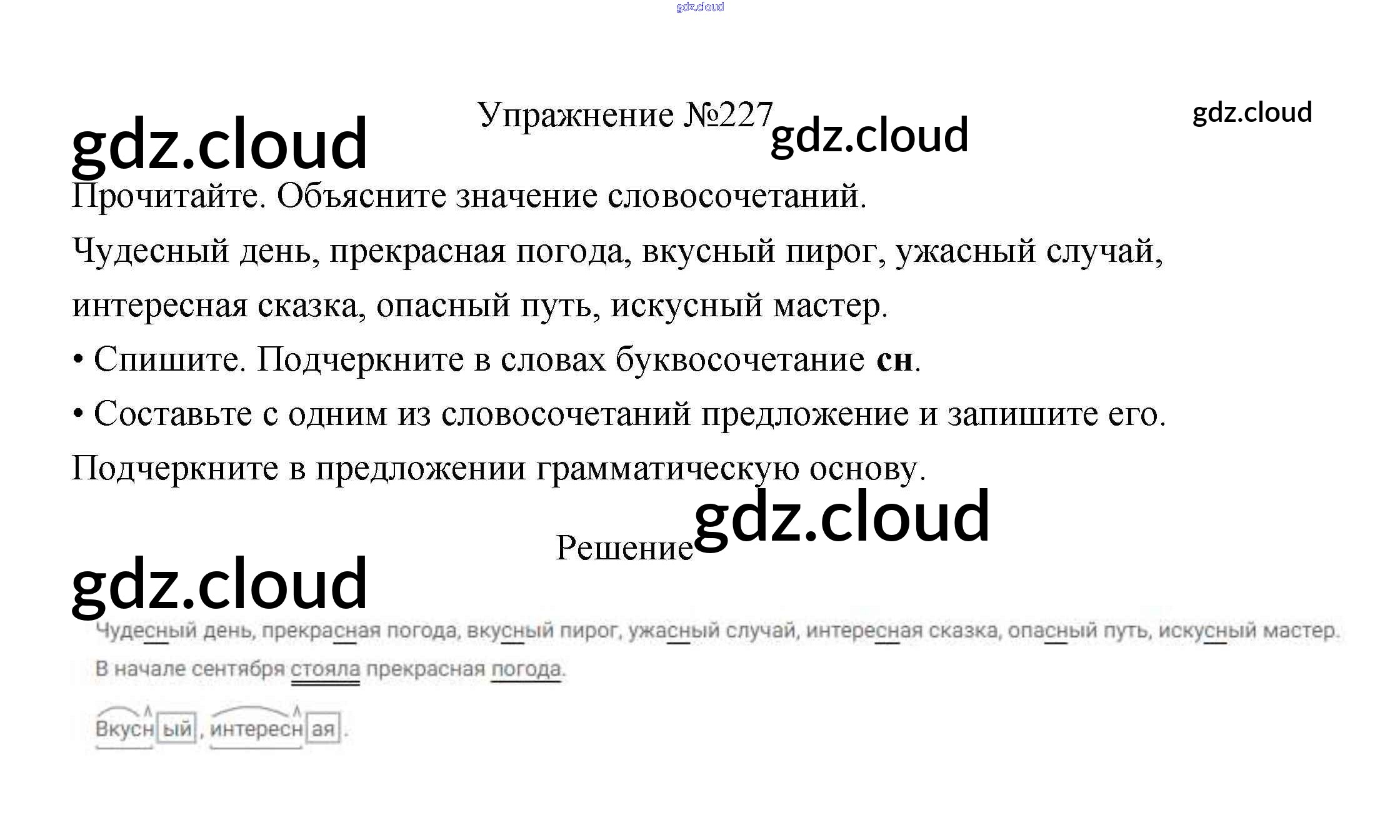 Ответ на задание 227 Учебник Русский язык за 3 (третий) класс Канакина, Горецкий Школа России 2013 Часть 1, 2