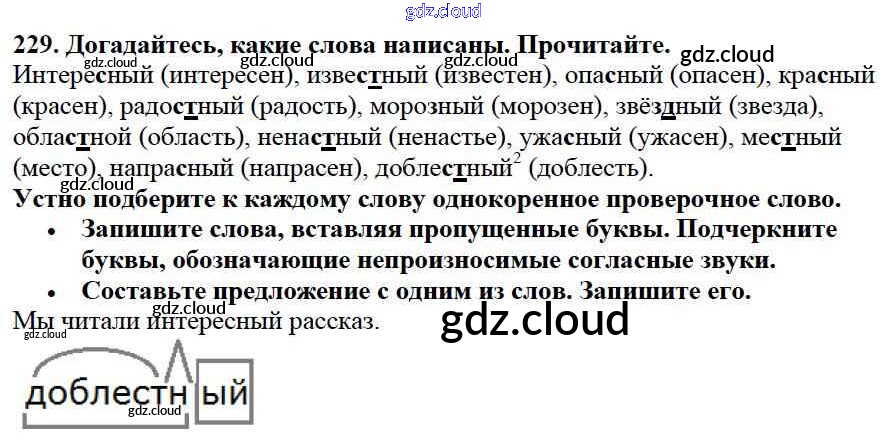 Ответ на задание 229 Учебник Русский язык за 3 (третий) класс Канакина, Горецкий Школа России 2013 Часть 1, 2