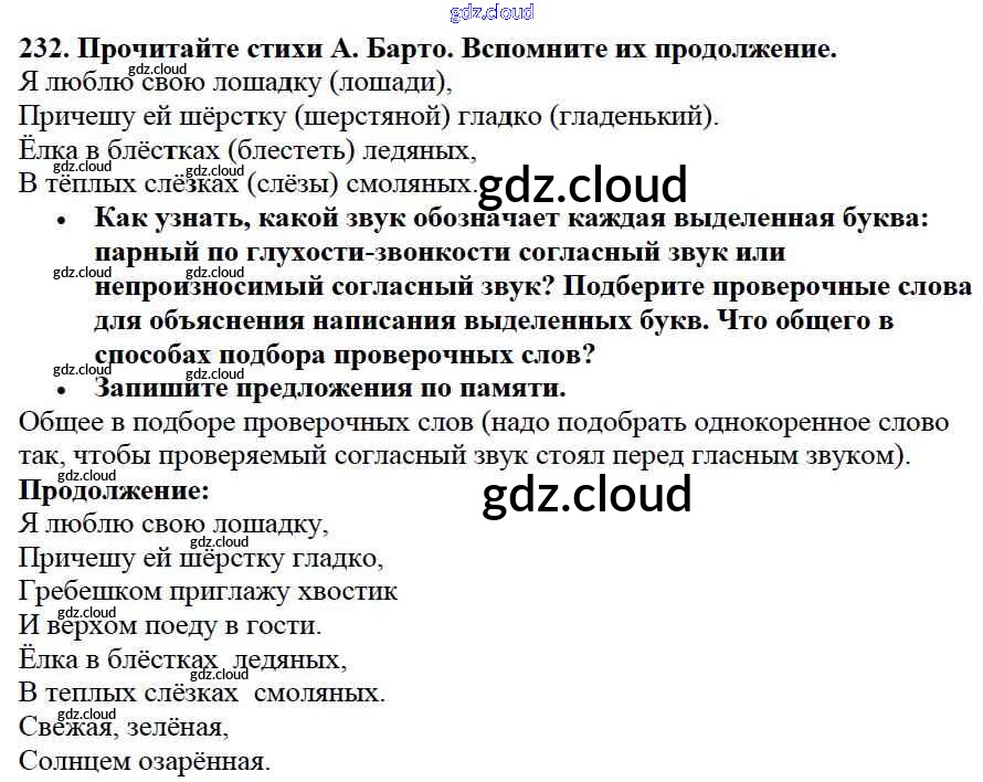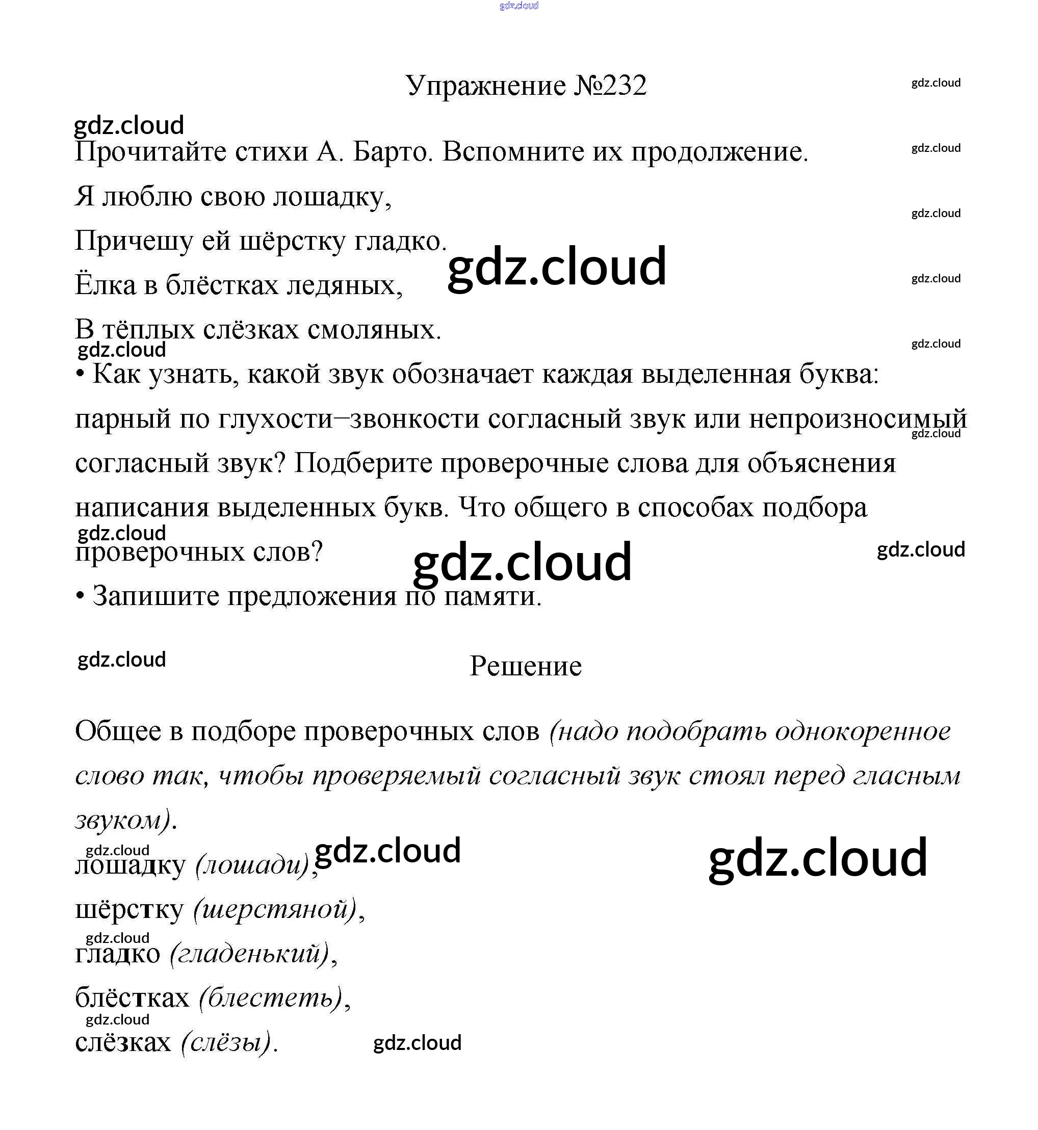 Ответ на задание 232 Учебник Русский язык за 3 (третий) класс Канакина, Горецкий Школа России 2013 Часть 1, 2
