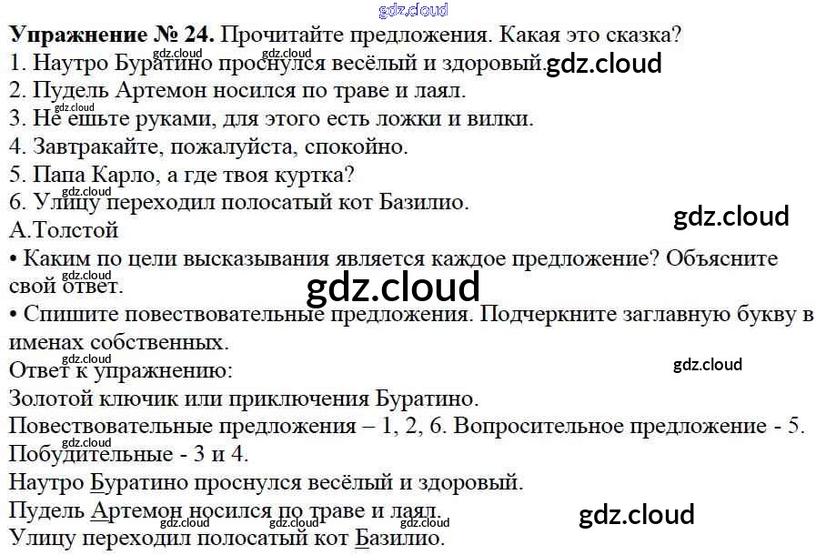 Ответ на задание 24 Учебник Русский язык за 3 (третий) класс Канакина, Горецкий Школа России 2013 Часть 1, 2
