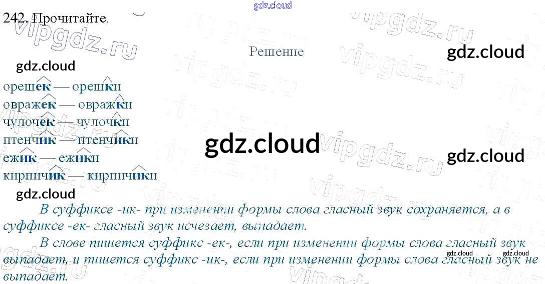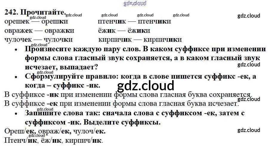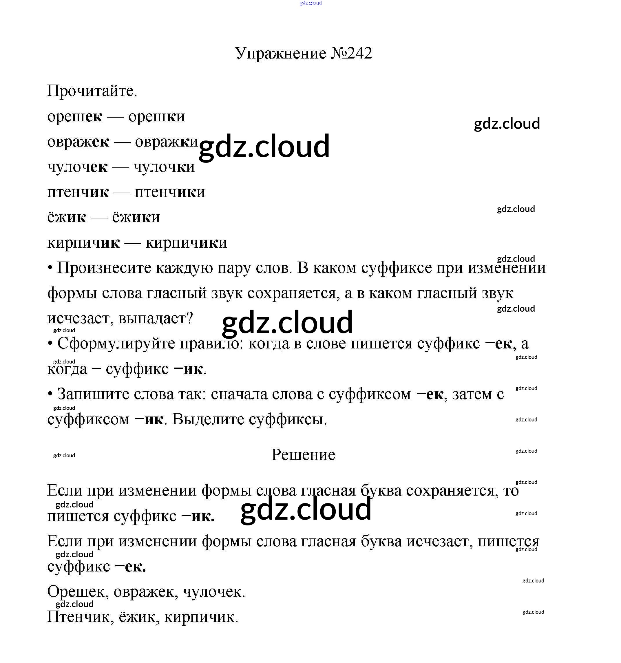Ответ на задание 242 Учебник Русский язык за 3 (третий) класс Канакина, Горецкий Школа России 2013 Часть 1, 2