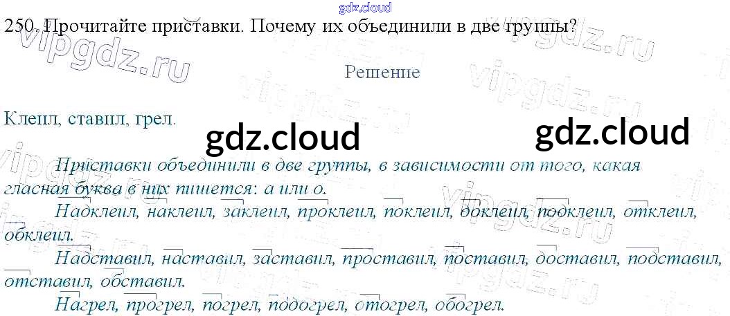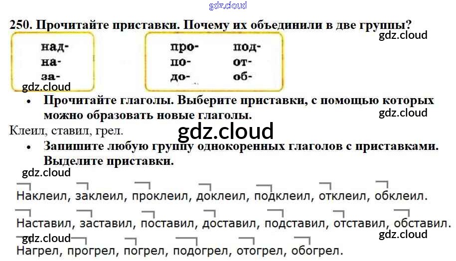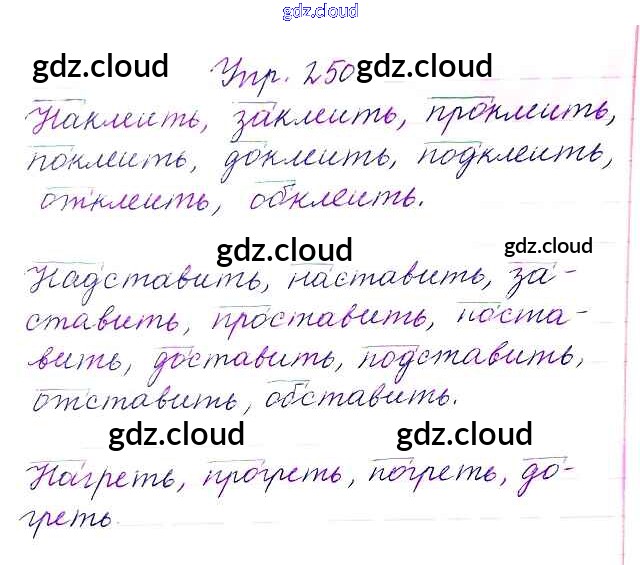Ответ на задание 250 Учебник Русский язык за 3 (третий) класс Канакина, Горецкий Школа России 2013 Часть 1, 2
