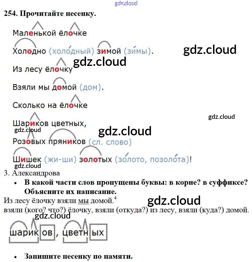 Ответ на задание 254 Учебник Русский язык за 3 (третий) класс Канакина, Горецкий Школа России 2013 Часть 1, 2