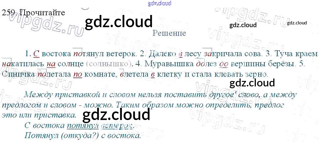 Ответ на задание 259 Учебник Русский язык за 3 (третий) класс Канакина, Горецкий Школа России 2013 Часть 1, 2