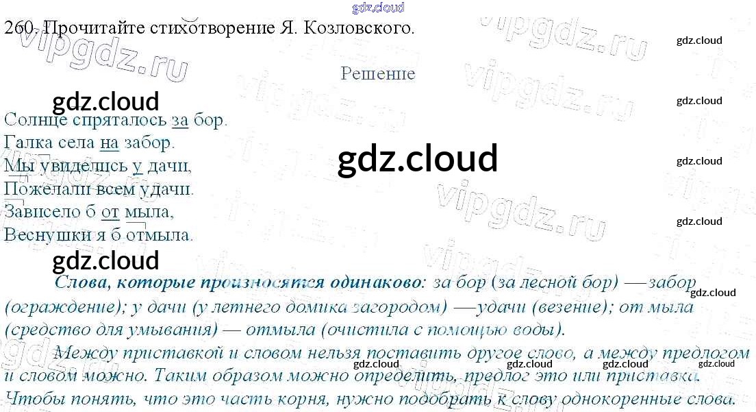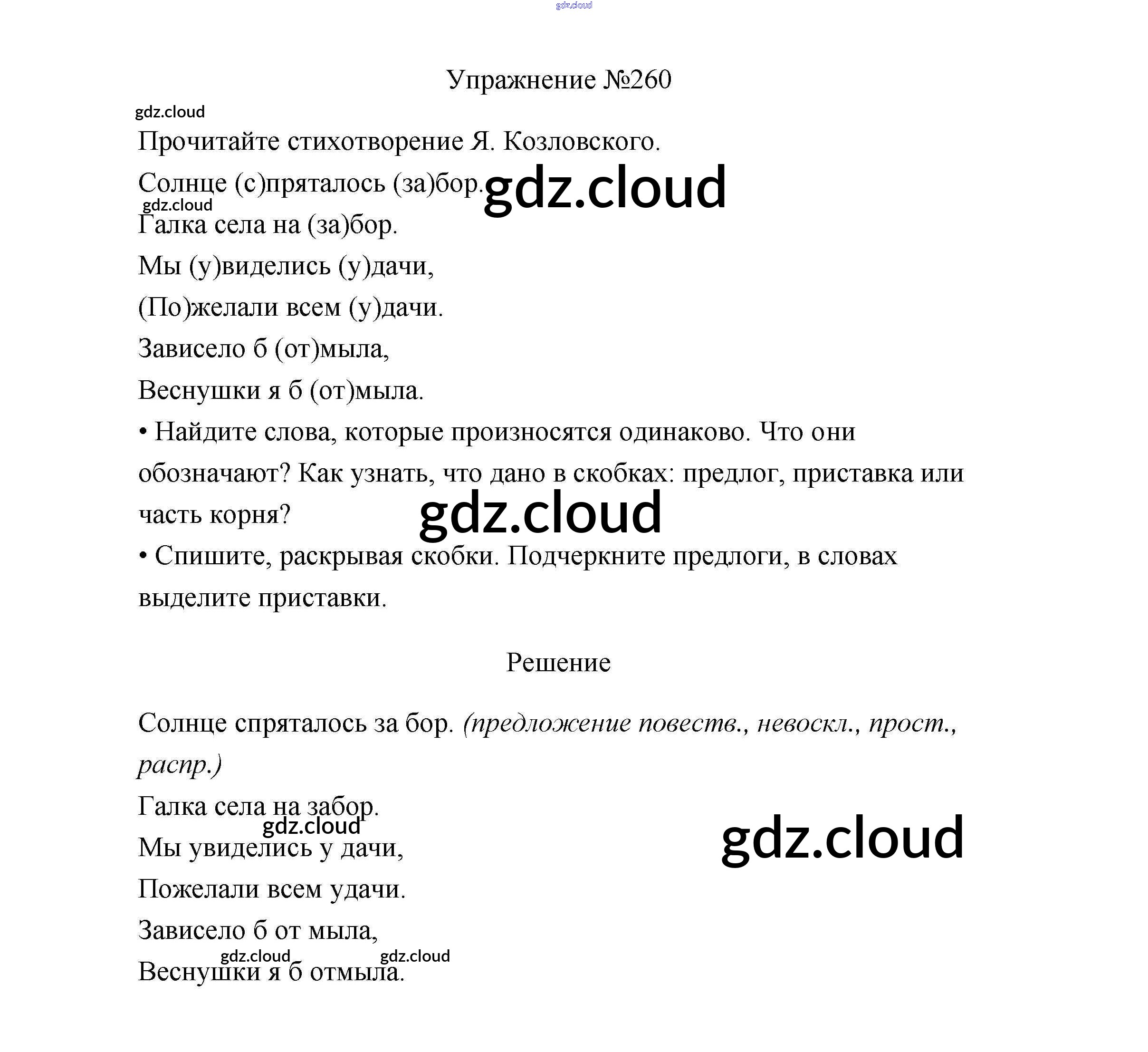 Ответ на задание 260 Учебник Русский язык за 3 (третий) класс Канакина, Горецкий Школа России 2013 Часть 1, 2